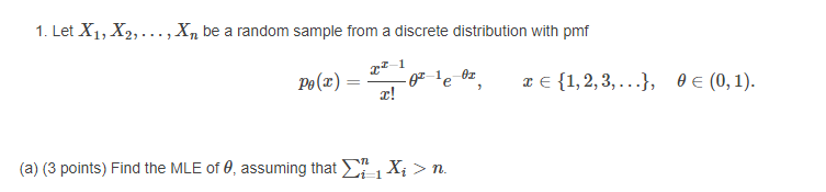 Let X, ...,X be a random sample from a discrete distribution with p...