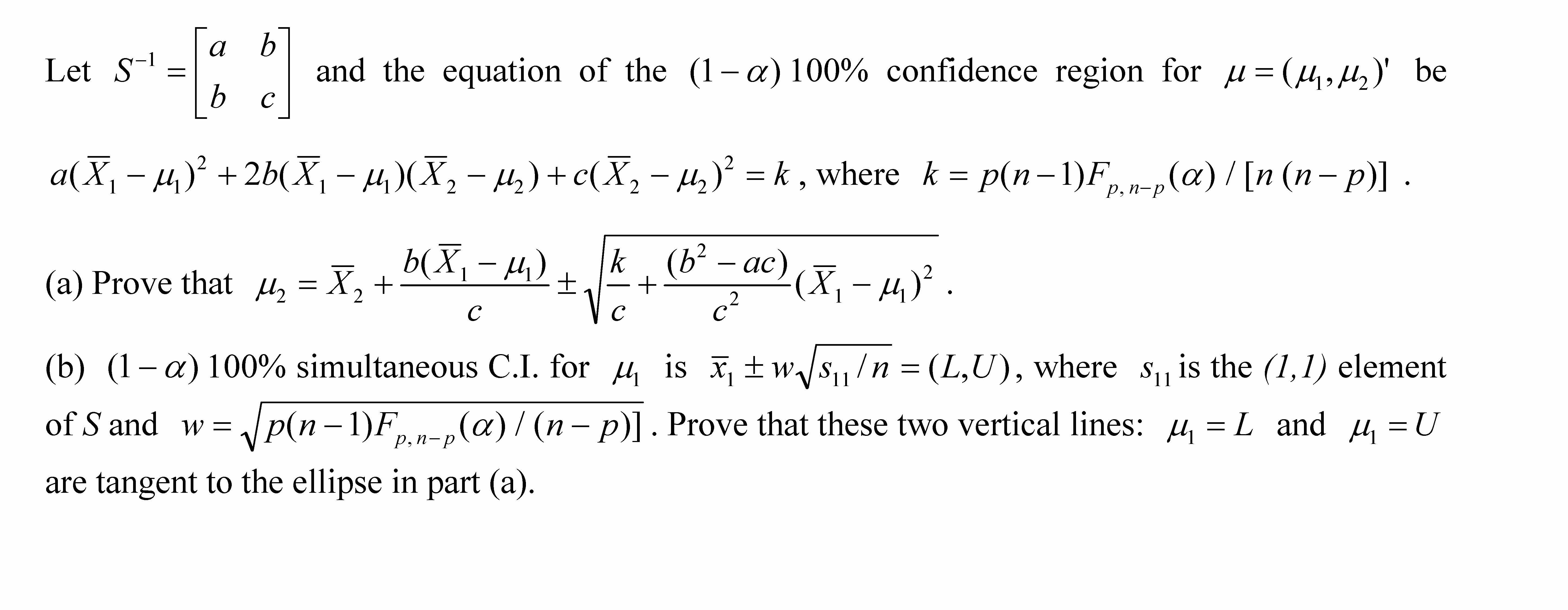 Let s- and the equation of the (1-a)100% confidence region for H=...