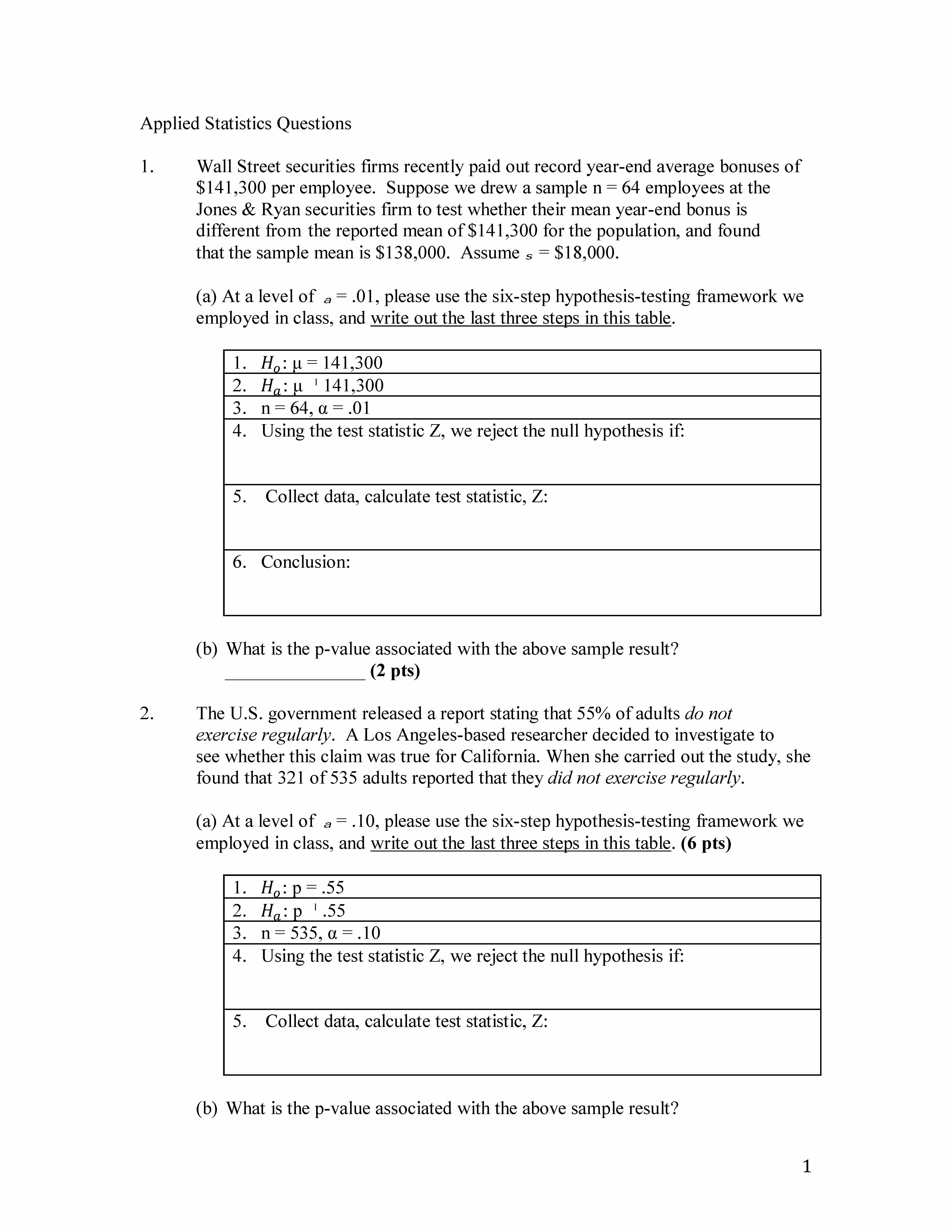1 Applied Statistics Questions 1. Wall Street securities firms re...