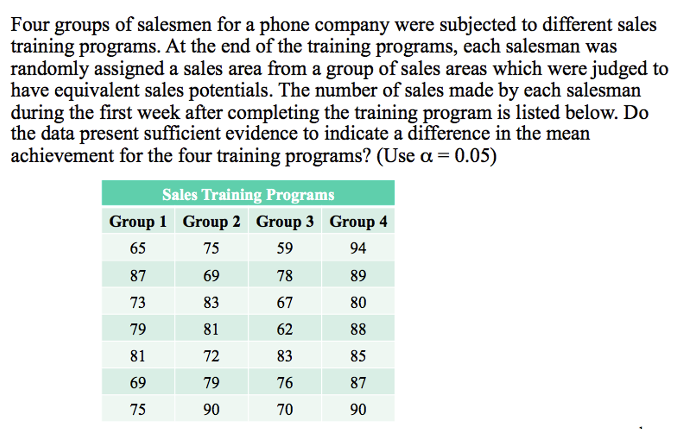 Four groups of salesmen for a phone company were subjected to diffe...