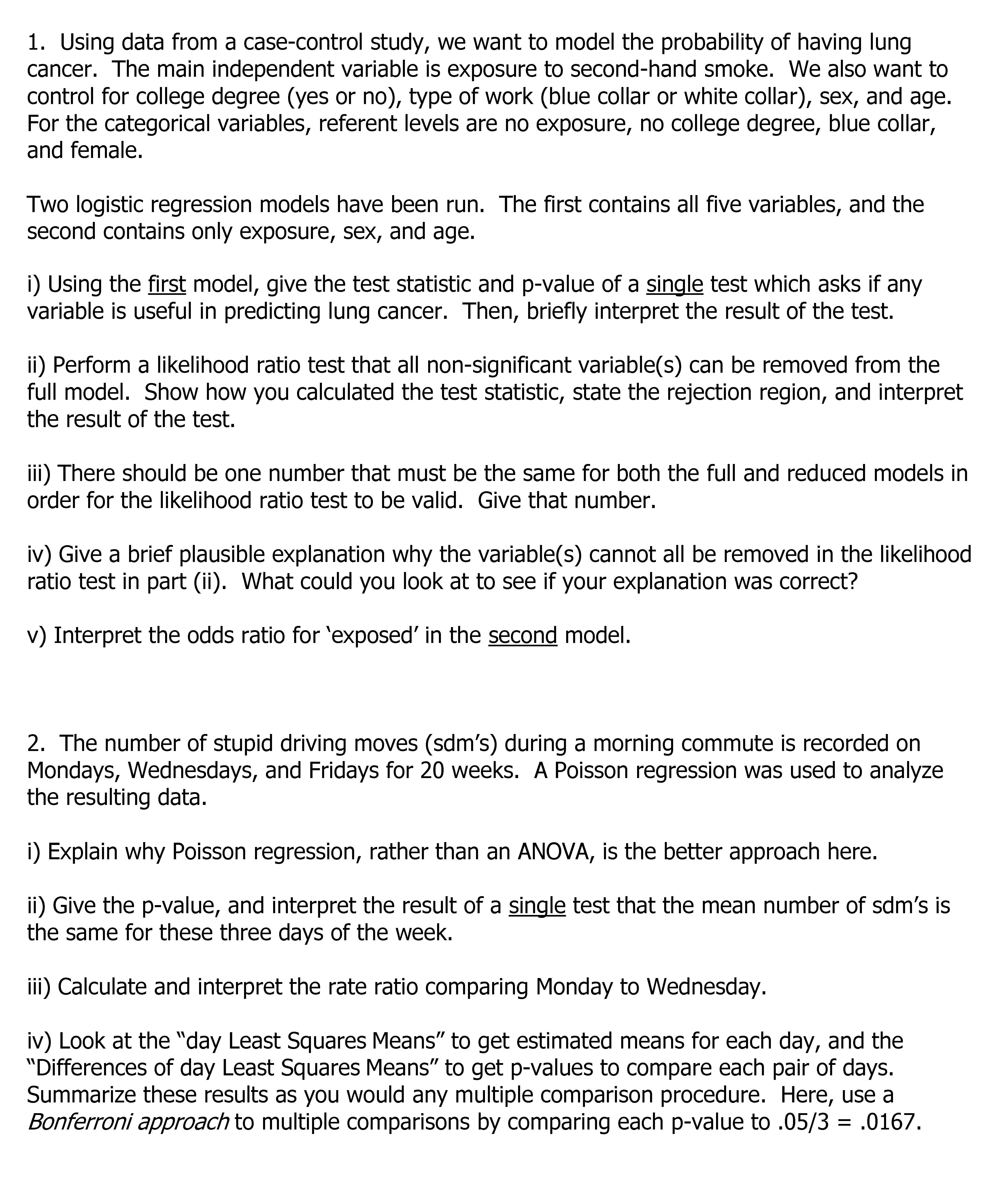 1. Using data from a case-control study, we want to model the proba...