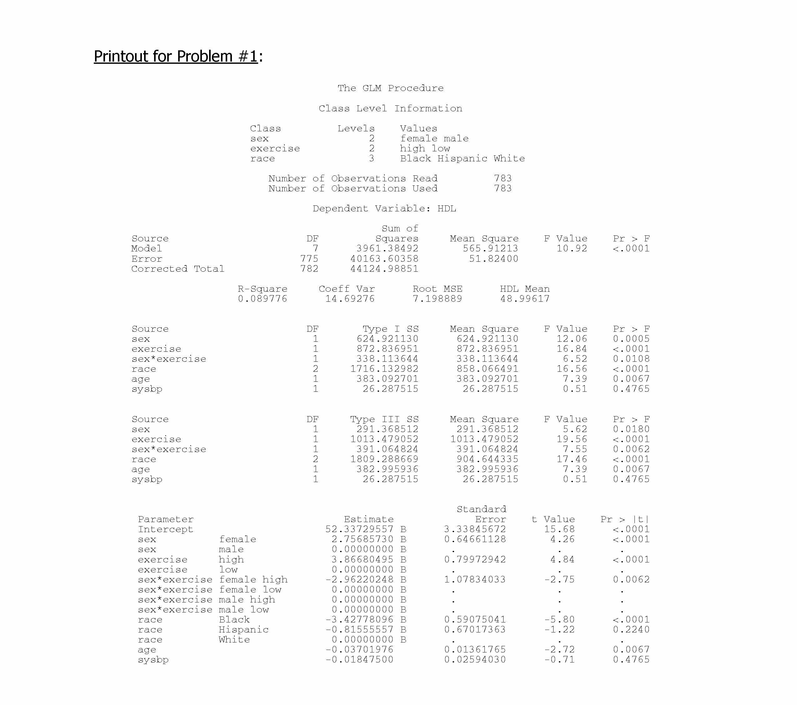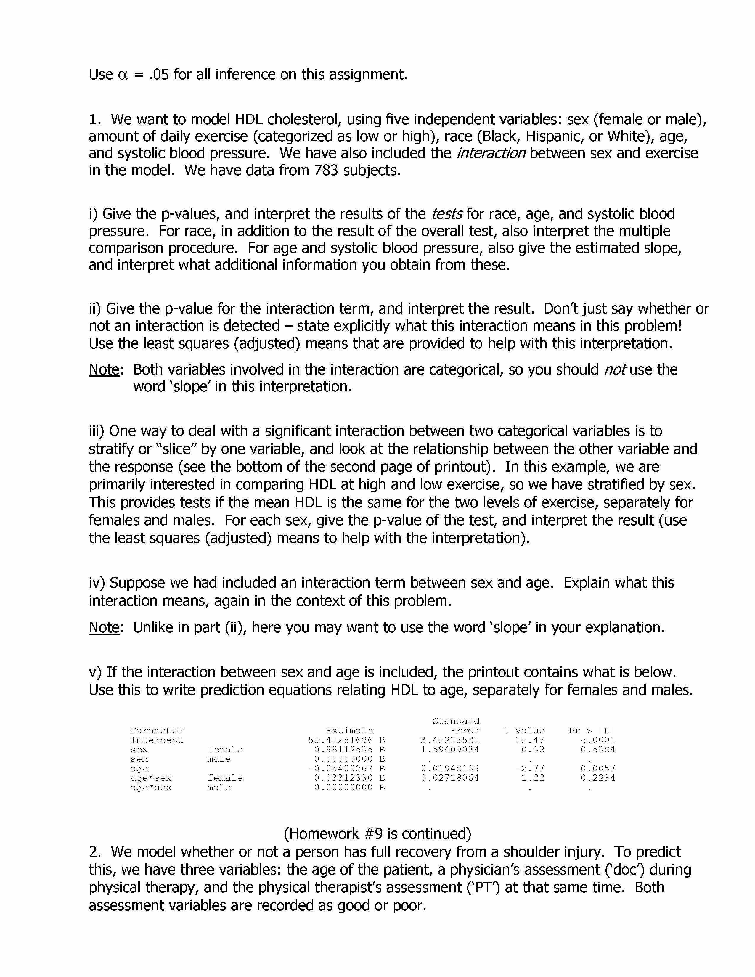 Use α = .05 for all inference on this assignment. 1. We want to...