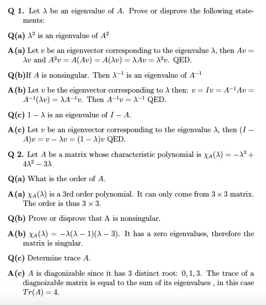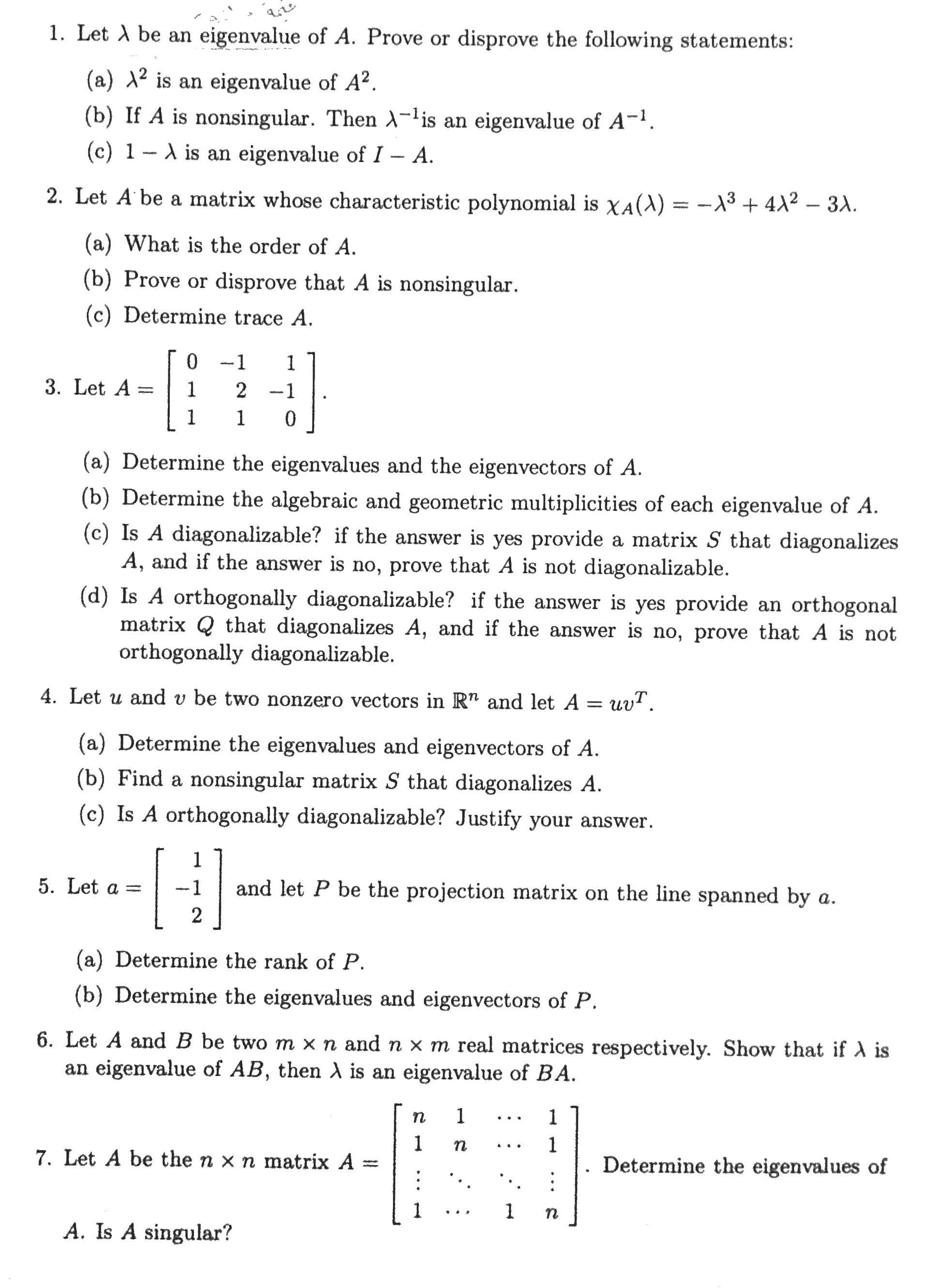 1. Let 1 be an eigenvalue of A. Prove or disprove the following sta...