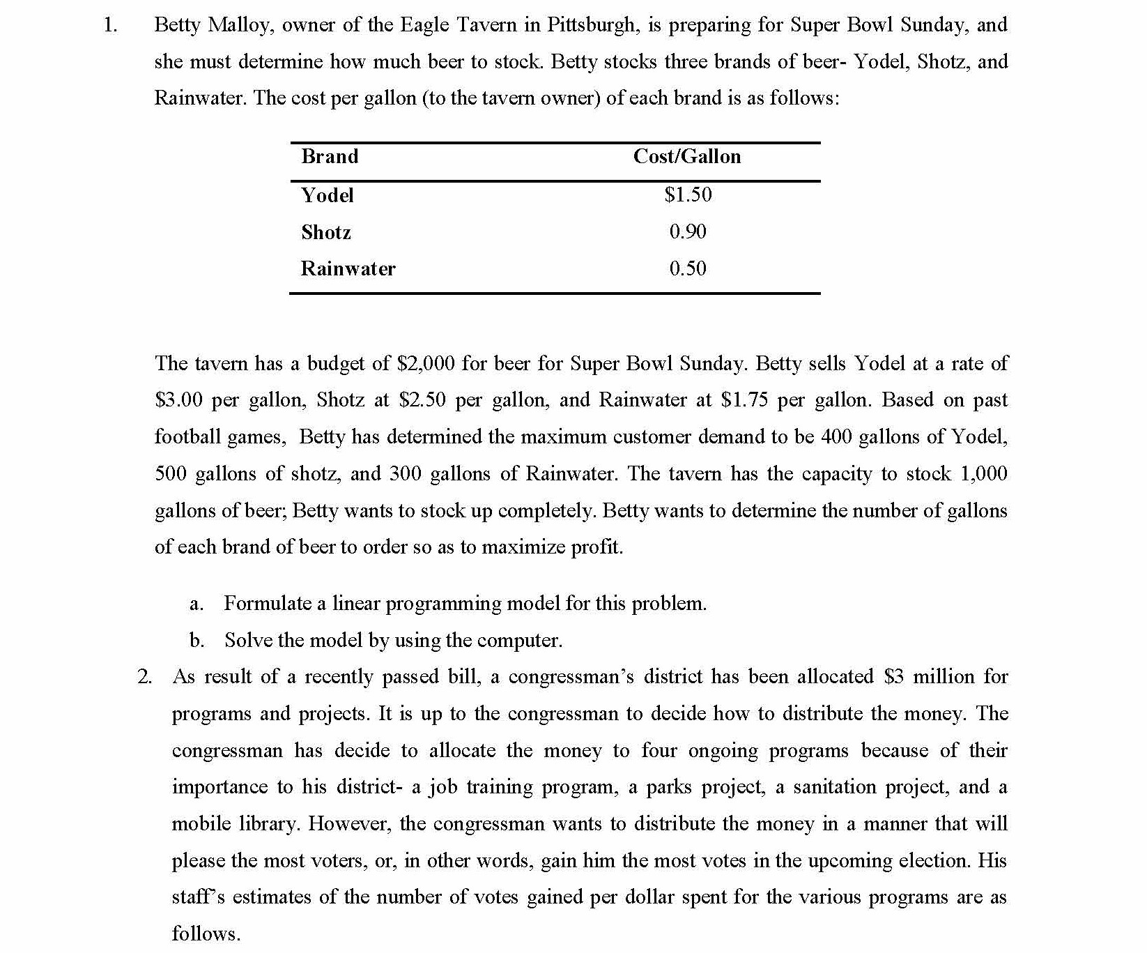 1. Betty Malloy, owner of the Eagle Tavern in Pittsburgh, is prepa...