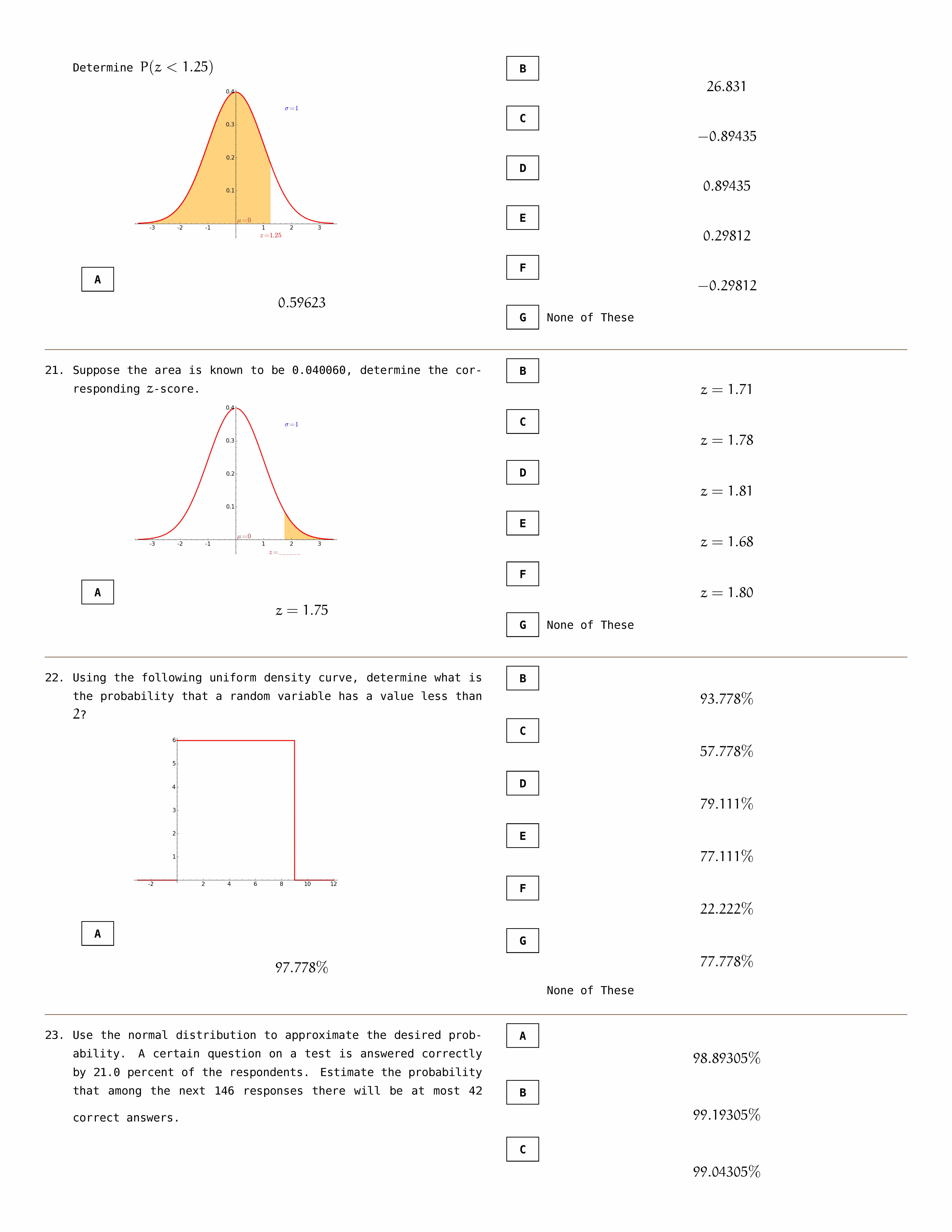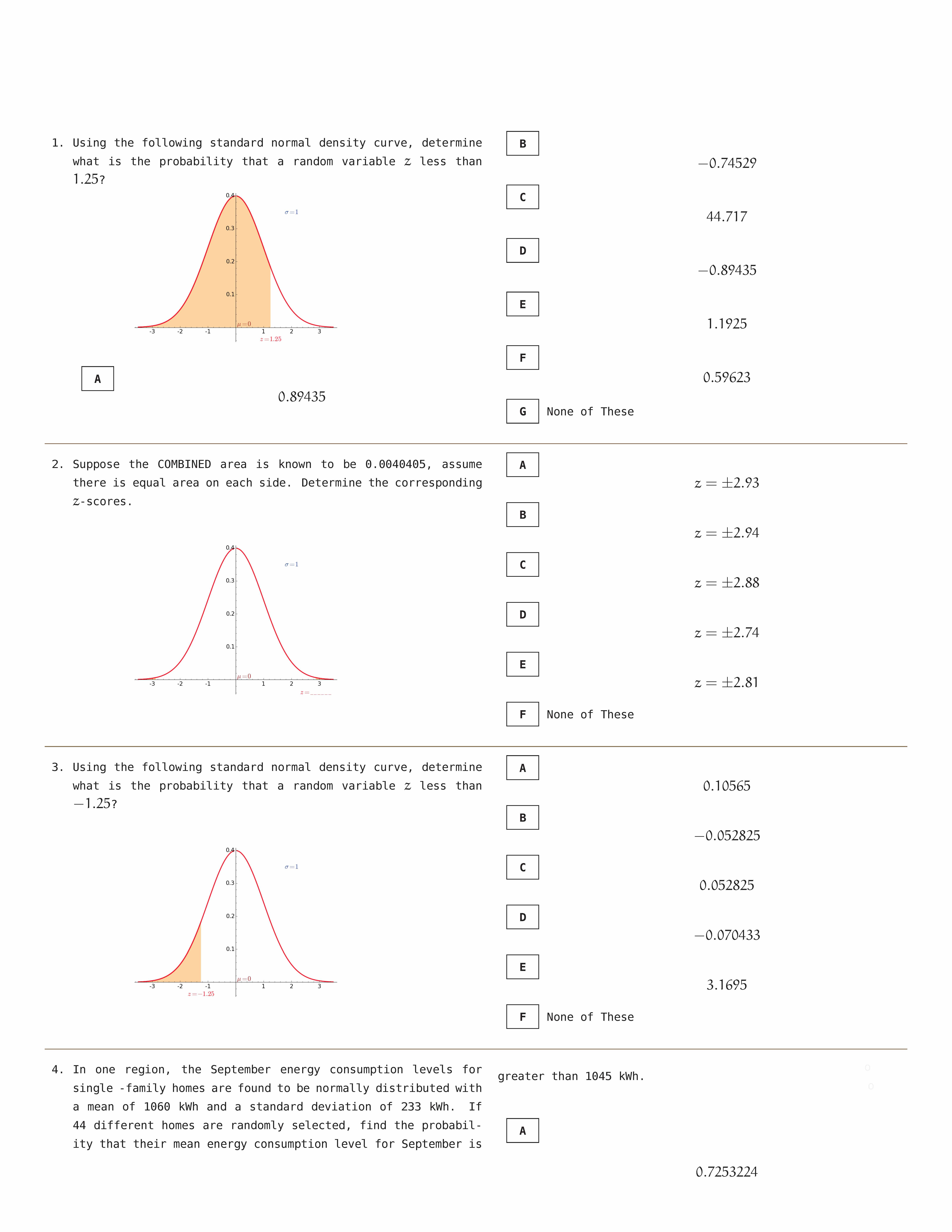 1. Using the following standard normal density curve, determine wha...