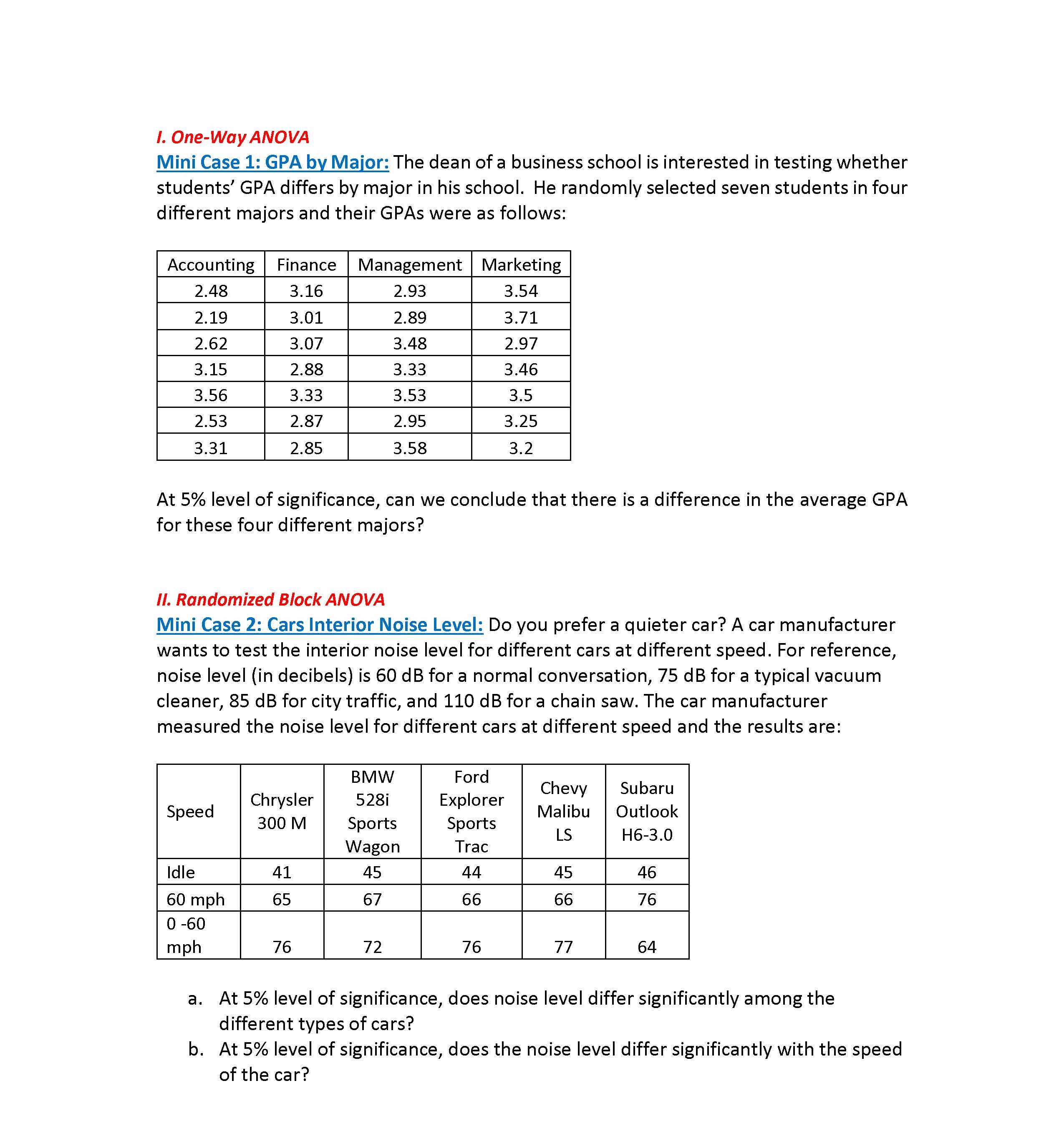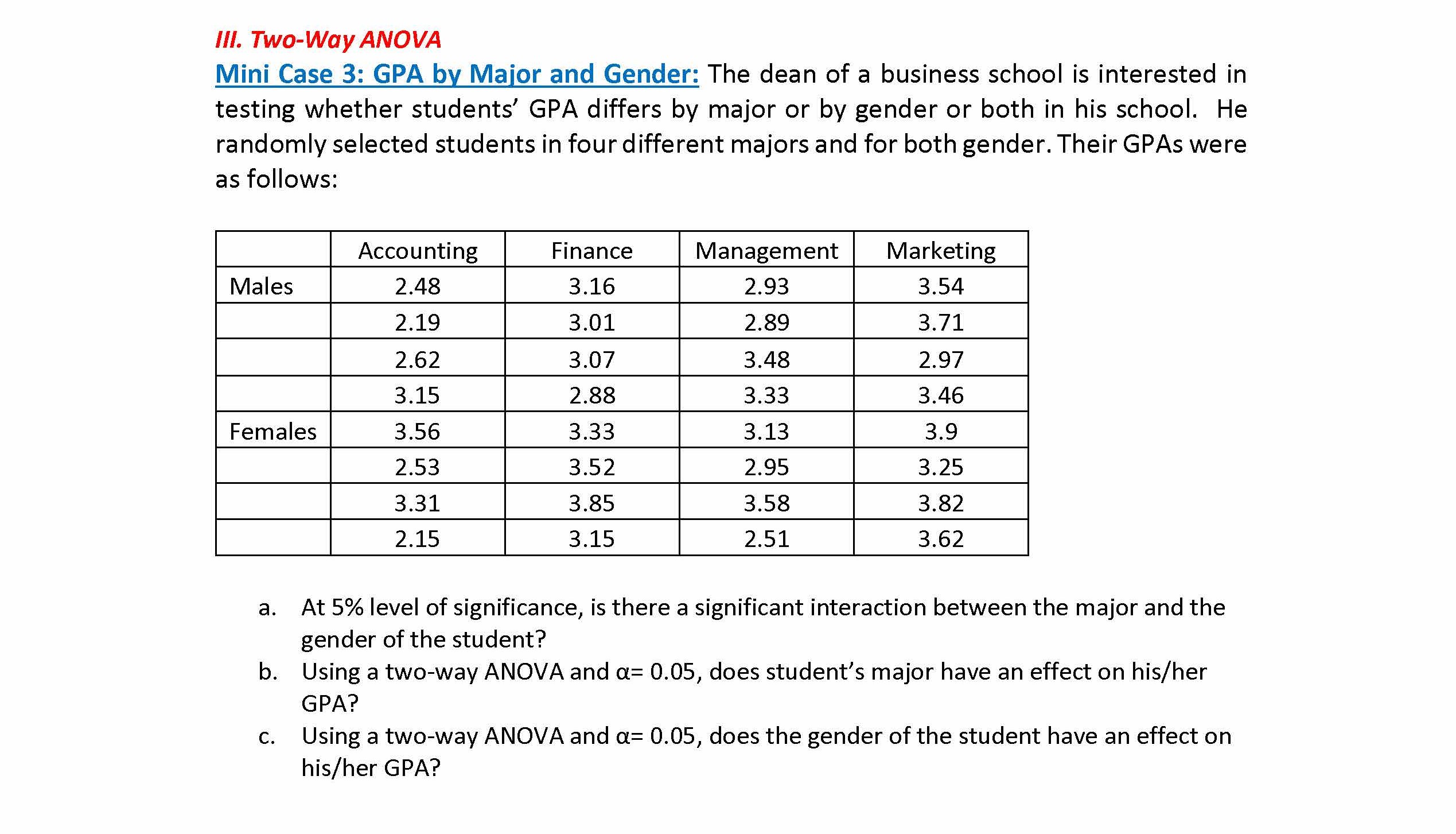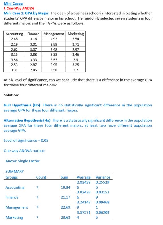 I. One-Way ANOVA Mini Case 1: GPA by Major: The dean of a business...