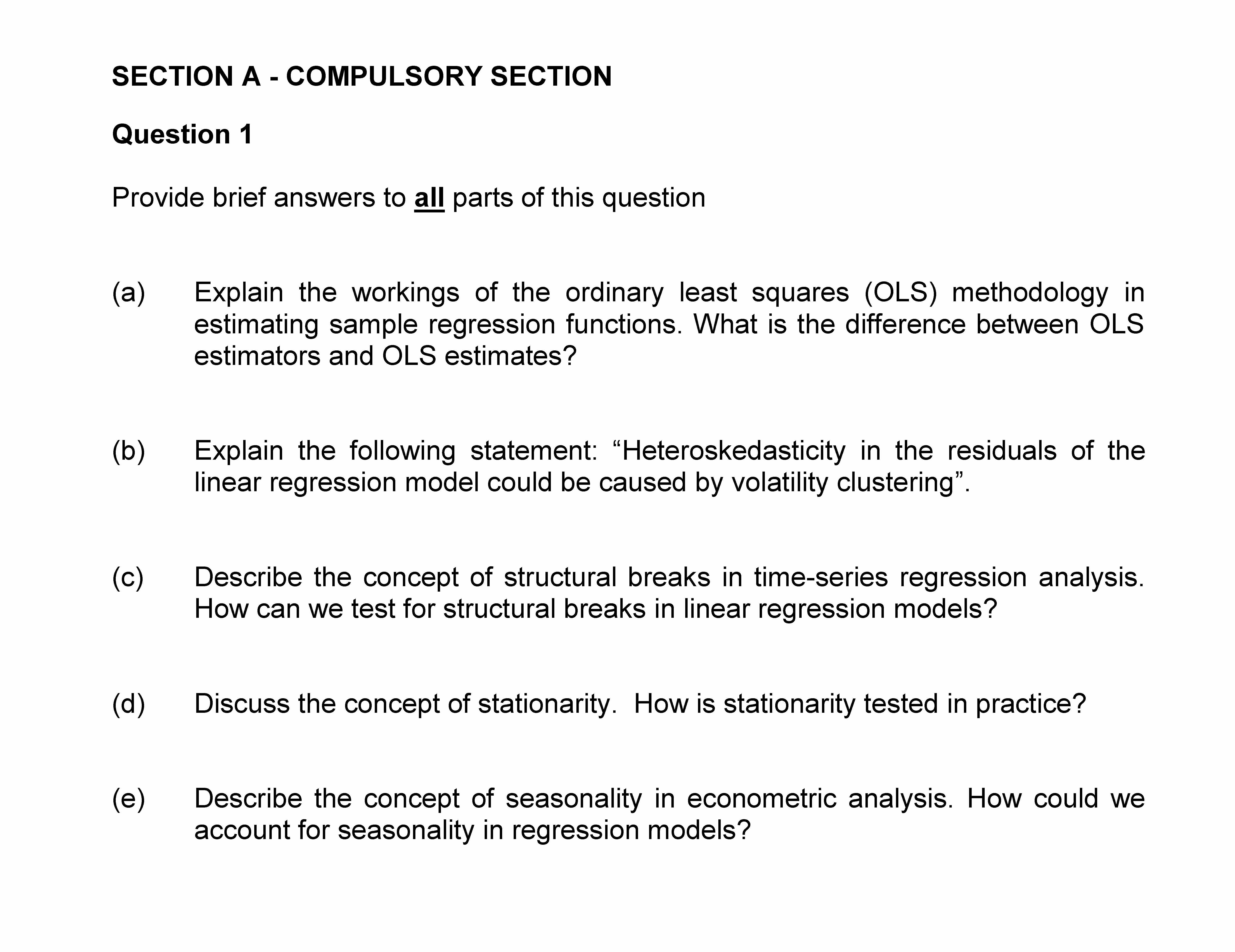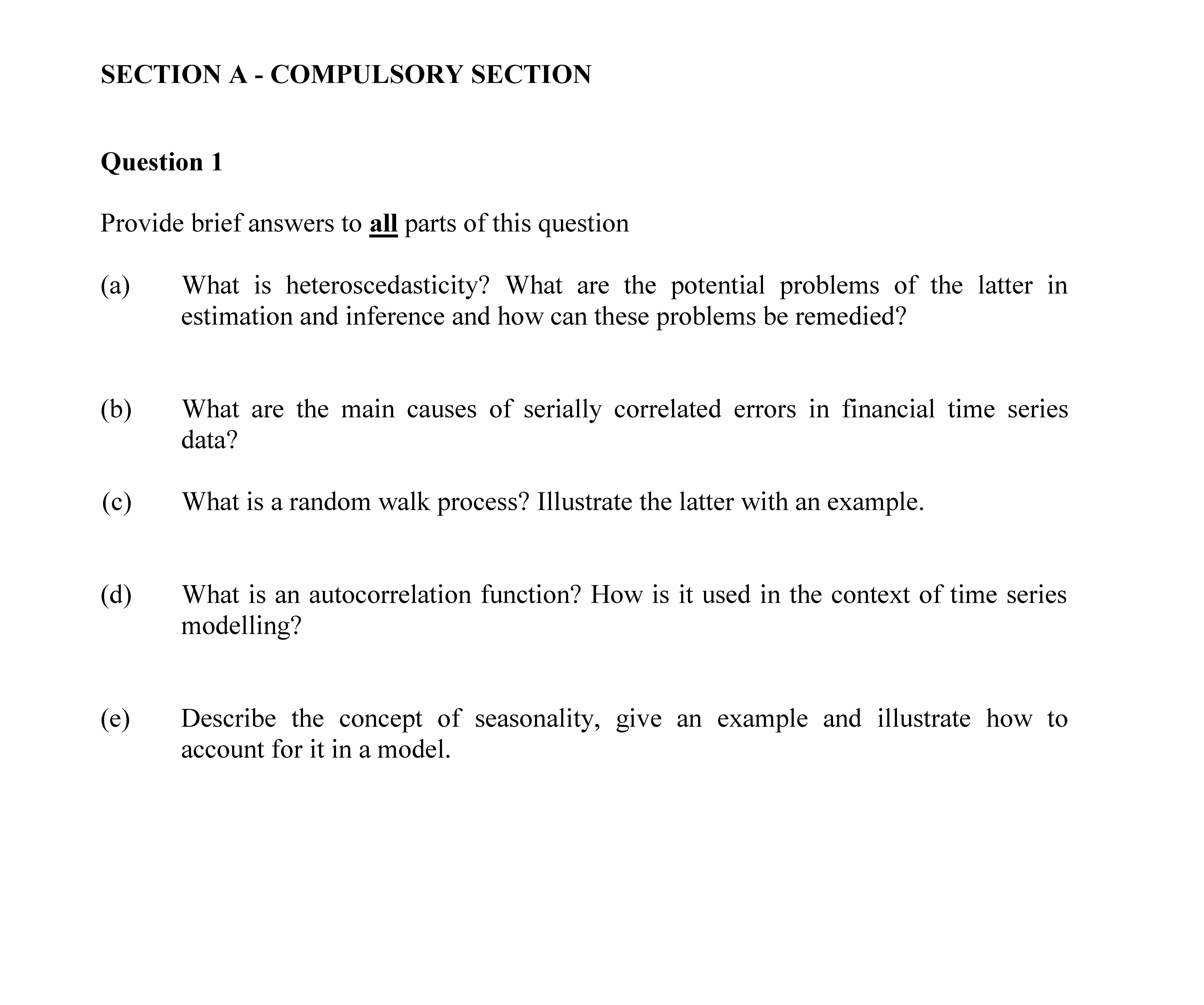 SECTION A - COMPULSORY SECTION Question 1 Provide brief answers to...