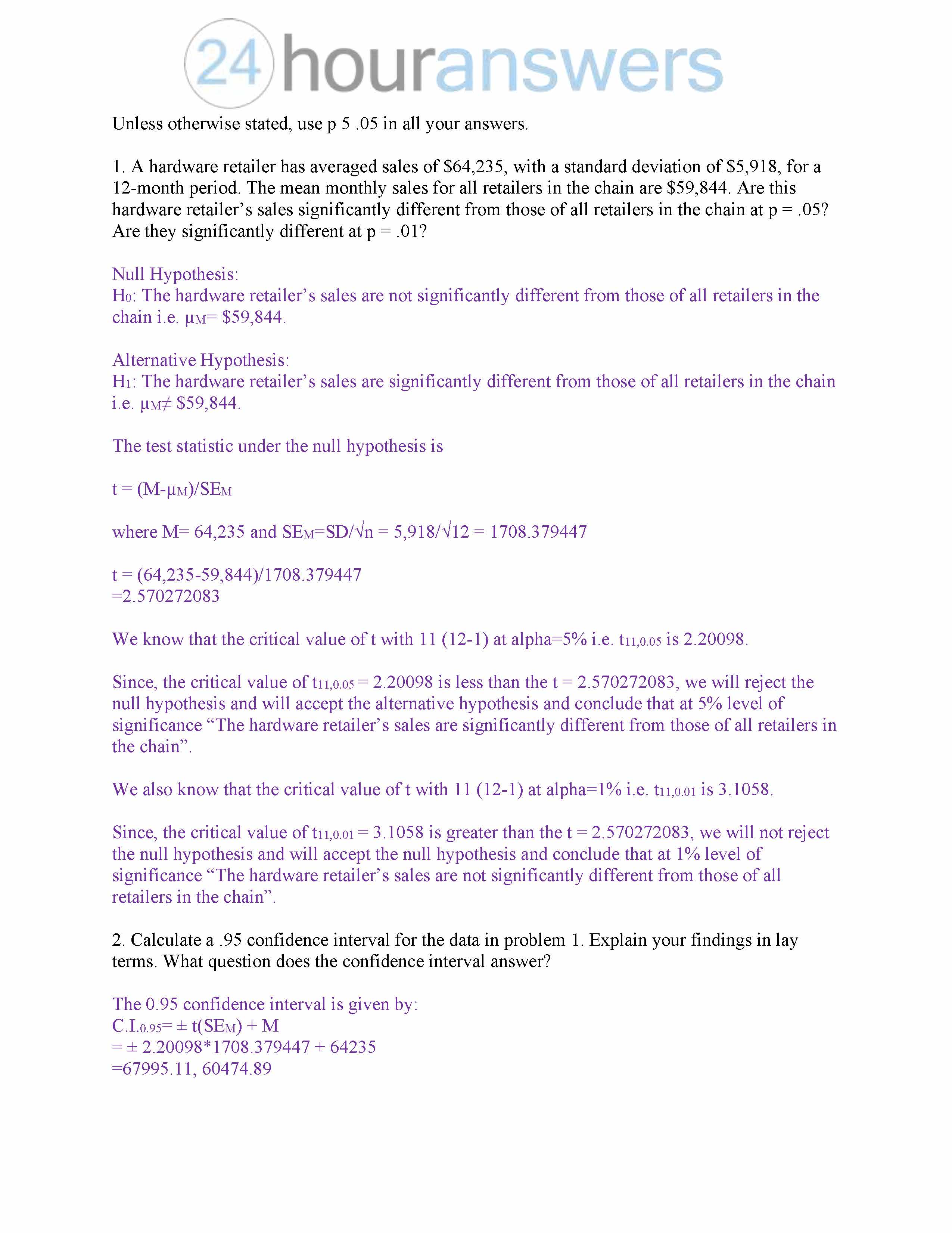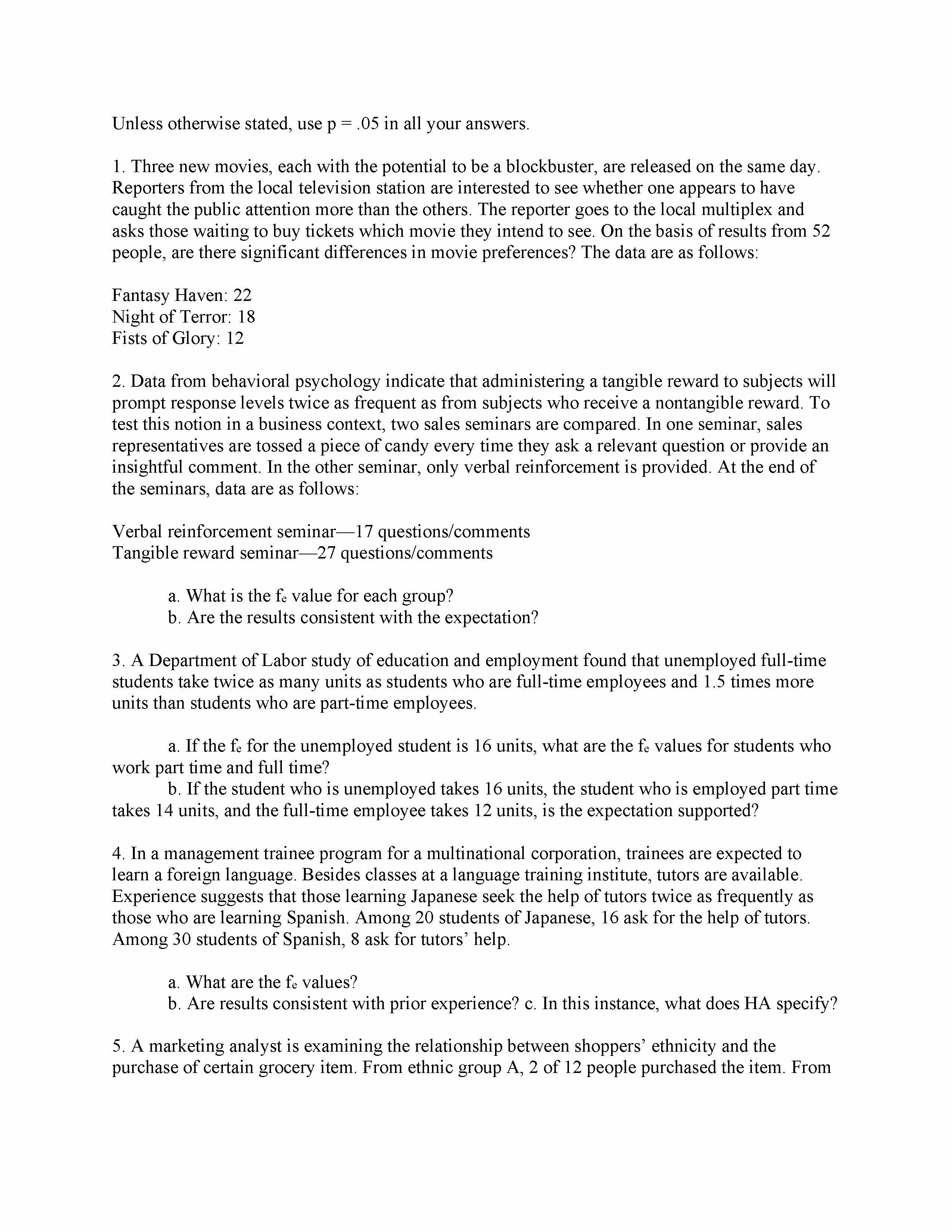 Unless otherwise stated, use p 5 .05 in all your answers. 1. A h...