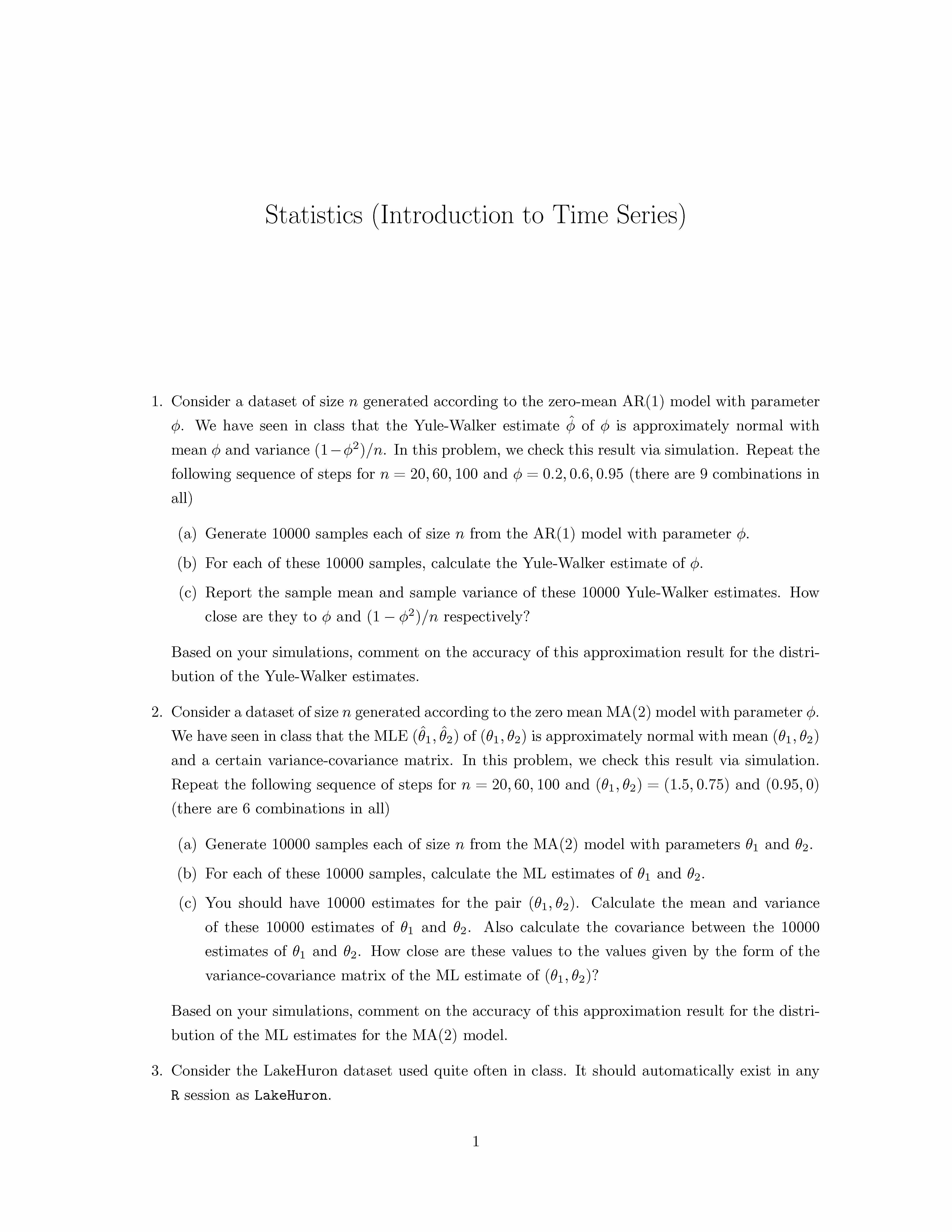 Statistics (Introduction to Time Series) 1. Consider a dataset of ...