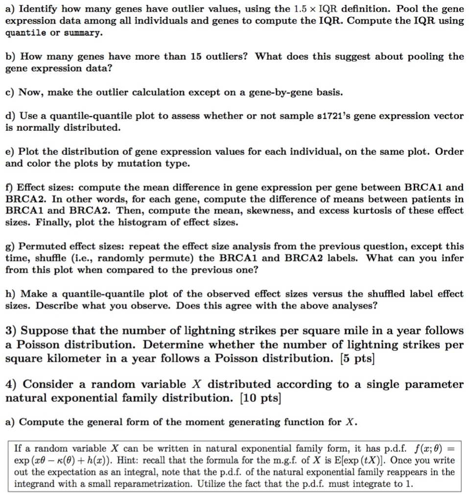 a) Identify how many genes have outlier values, using the 1.5 X IQR...