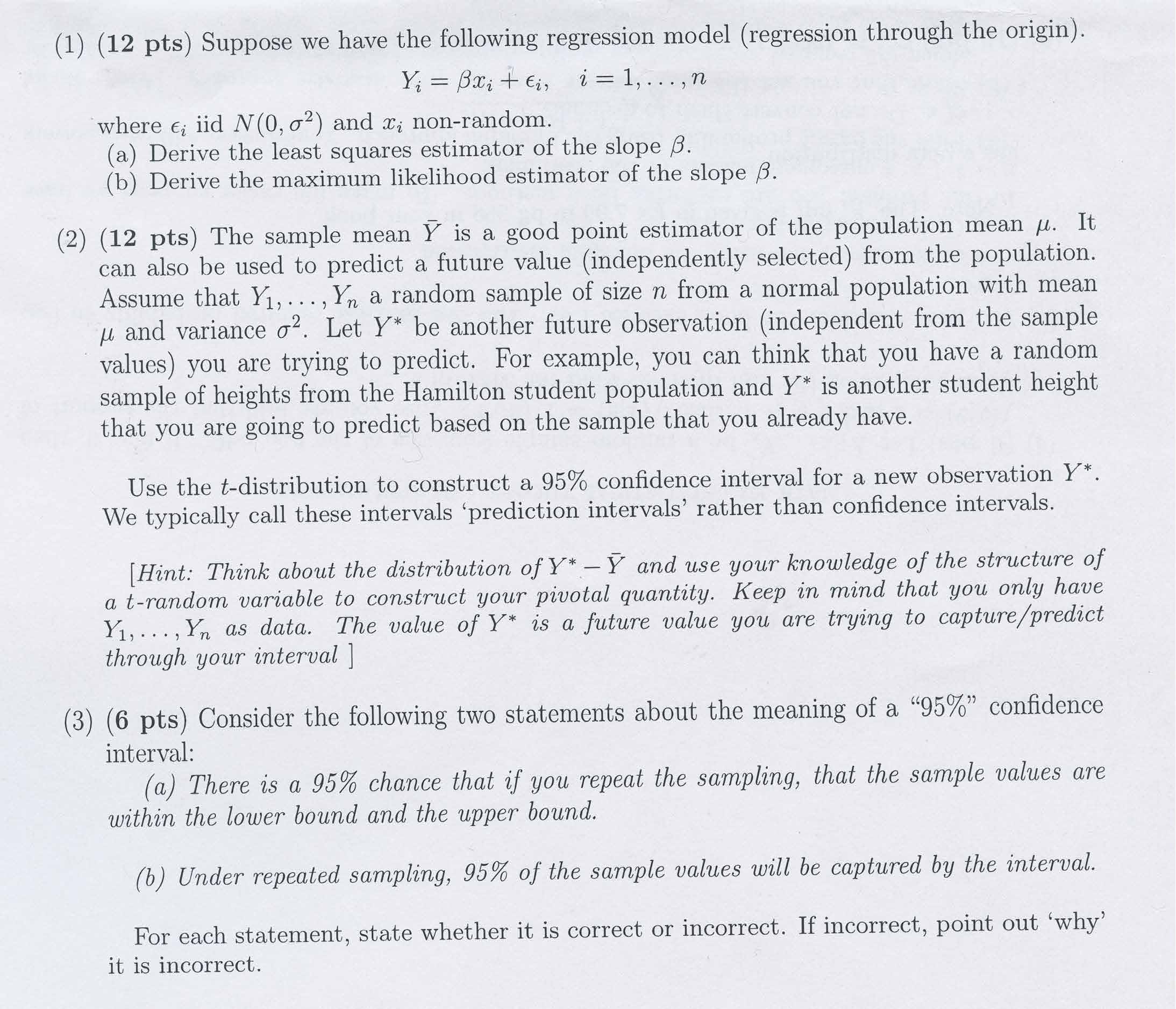 (1) (12 pts) Suppose we have the following regression model (regres...
