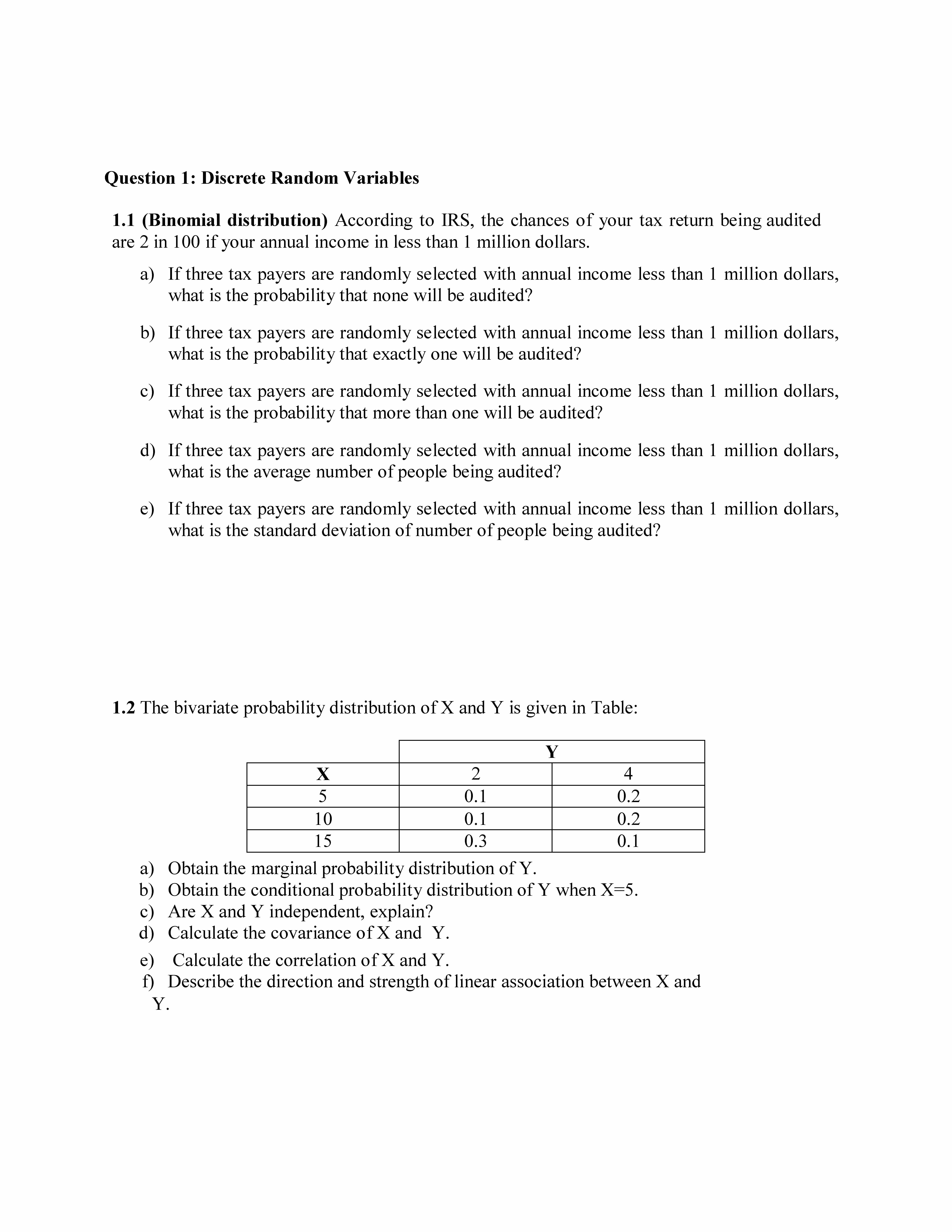 Question 1: Discrete Random Variables 1.1 (Binomial distribution) ...