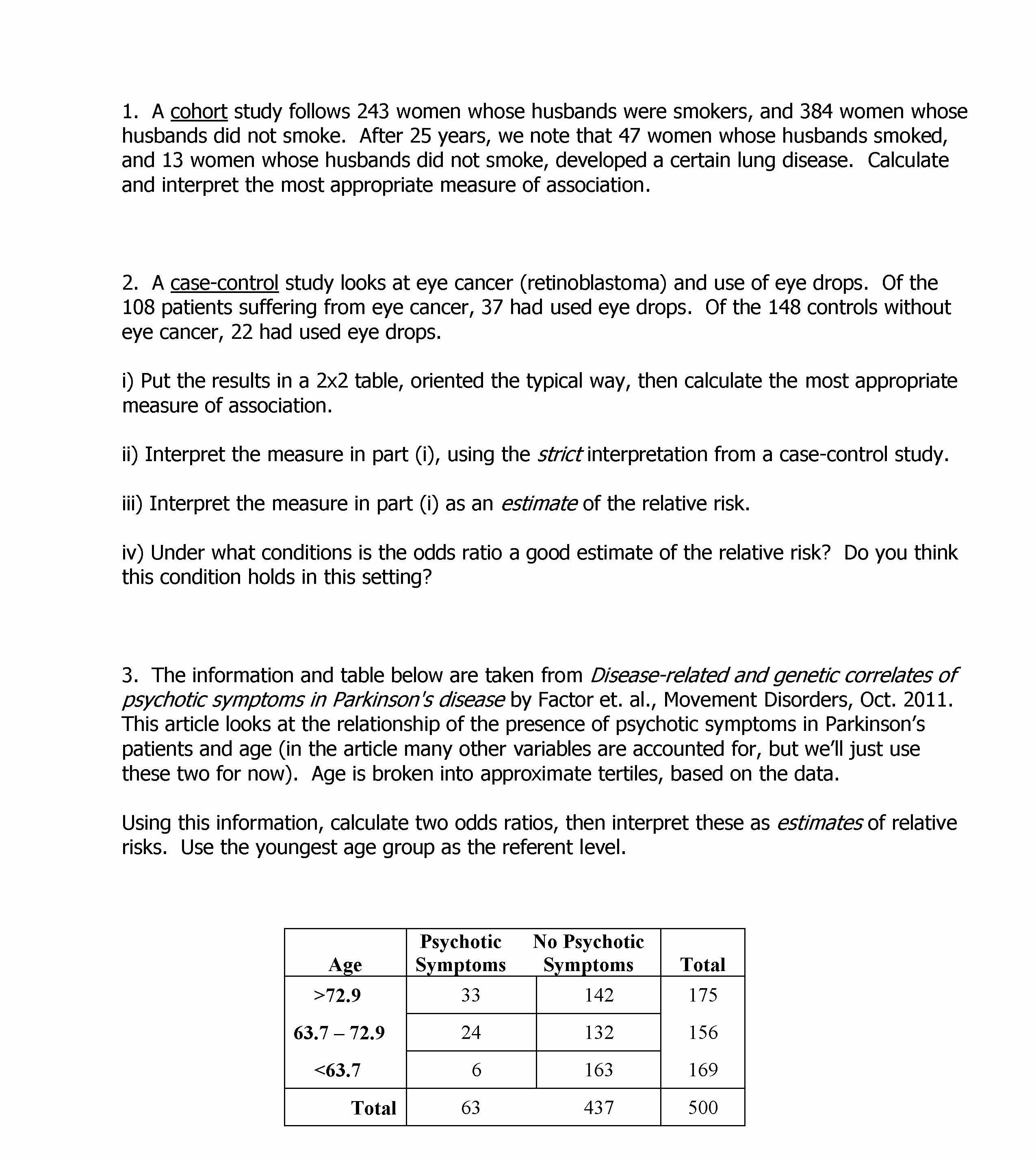 1. A cohort study follows 243 women whose husbands were smokers, an...