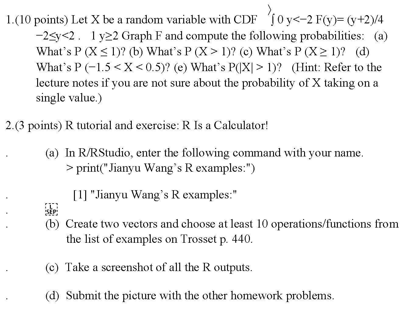 1. (10 points) Let X be a random variable with CDF