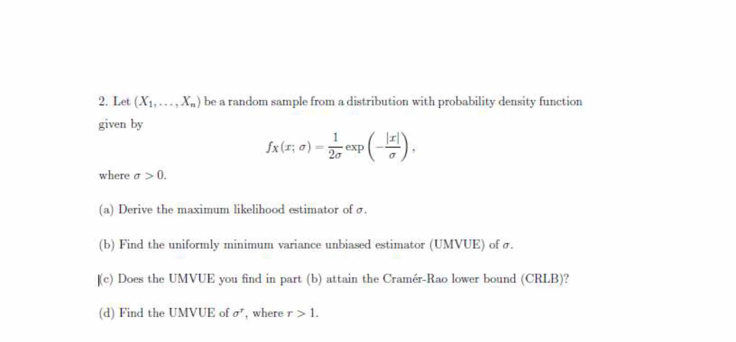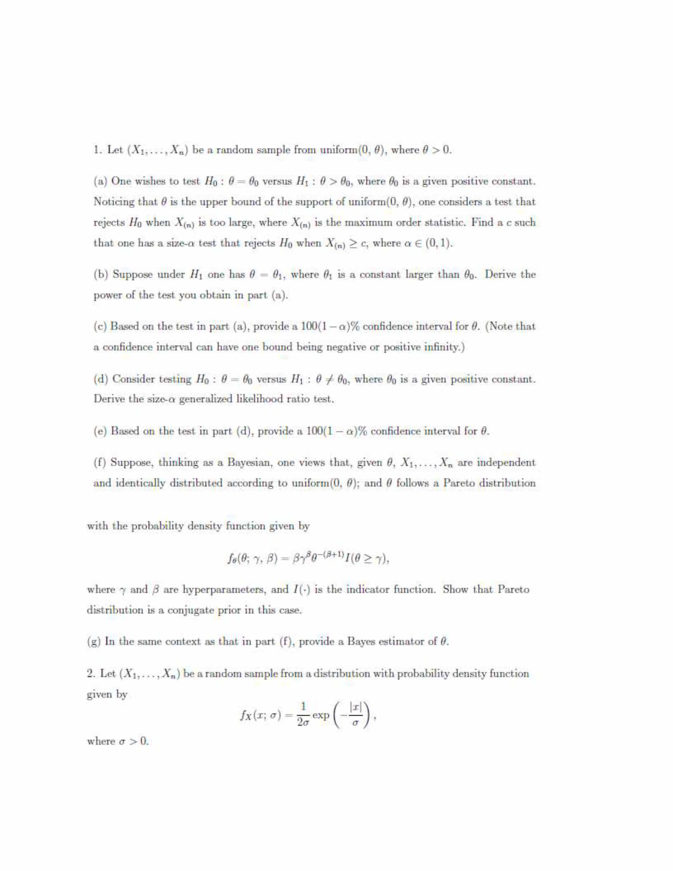 1. Let (X1 Xni) be a random sample from uniform(0, 0), where A >...