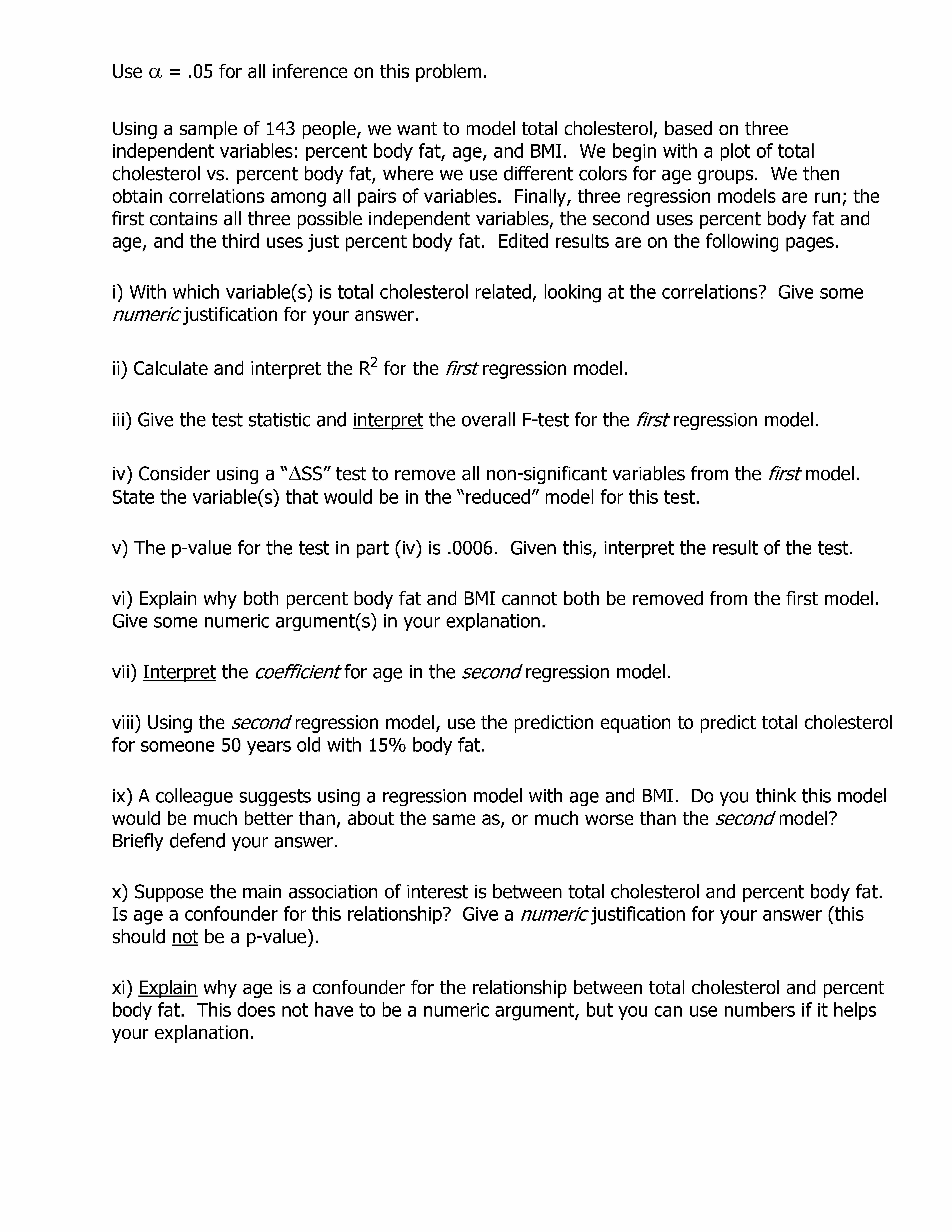 Use a .05 for all inference on this problem. Using a sample of 143...