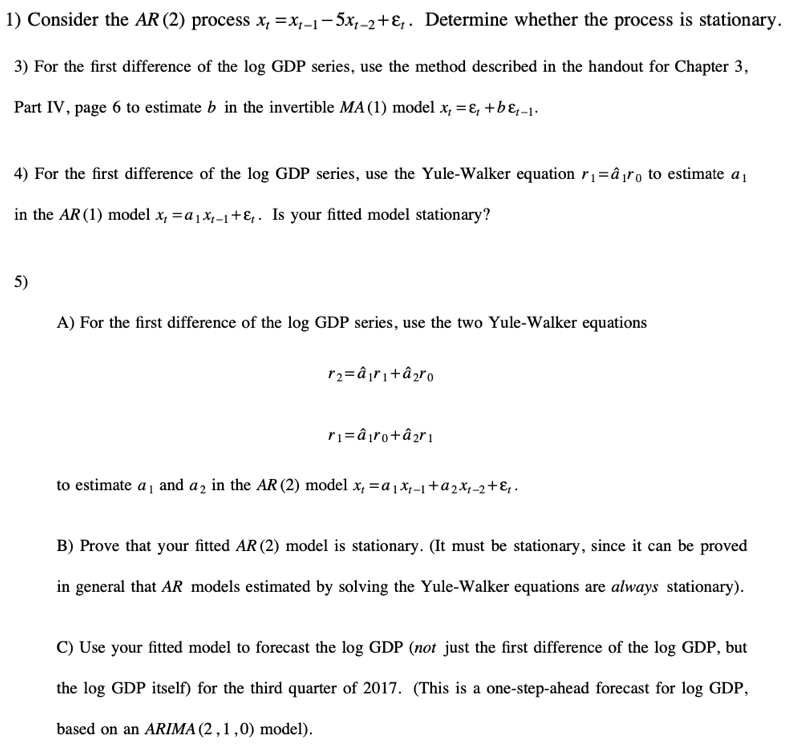 1) Consider the AR (2) process X1 Determine whether the process is ...