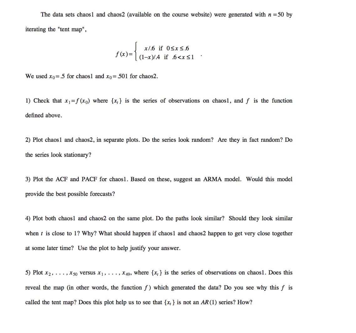 The data sets chaos1 and chaos2 (available on the course website) w...