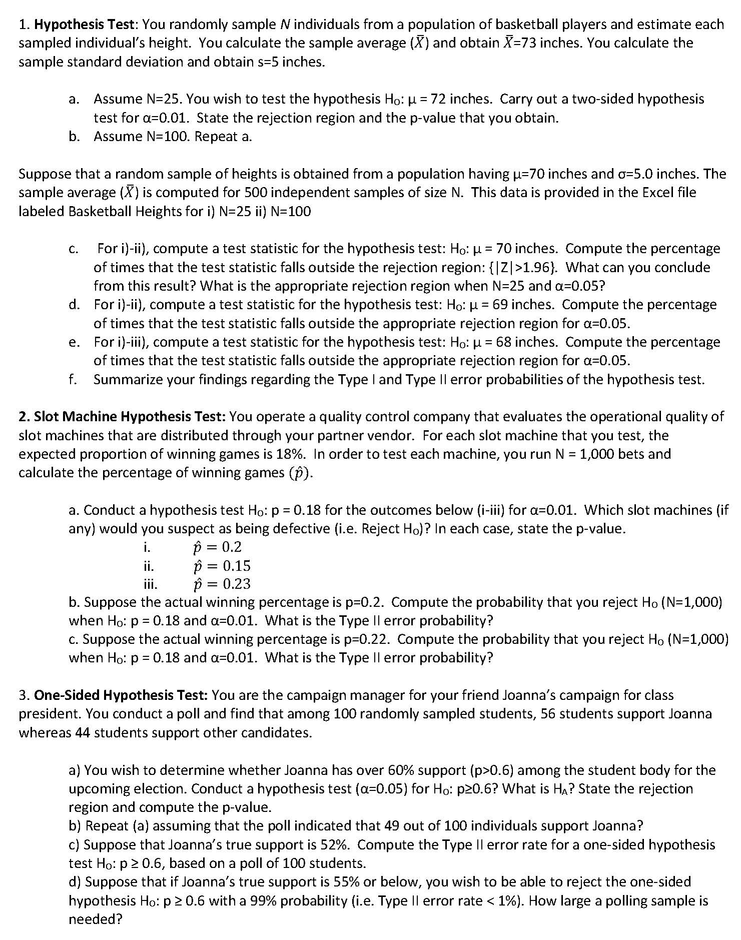 1.Hypothesis Test: You randomly sample N individuals from a populat...