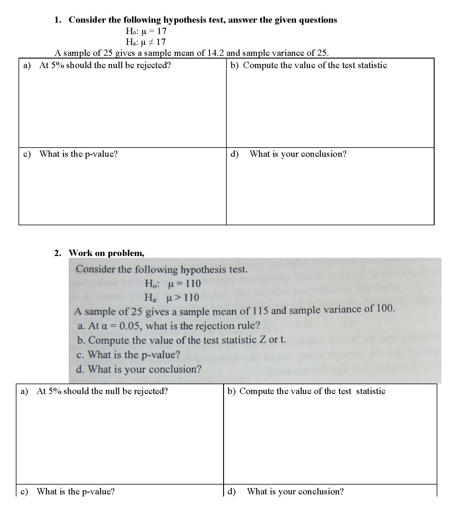 1. Consider the following hypothesis test, answer the given questio...