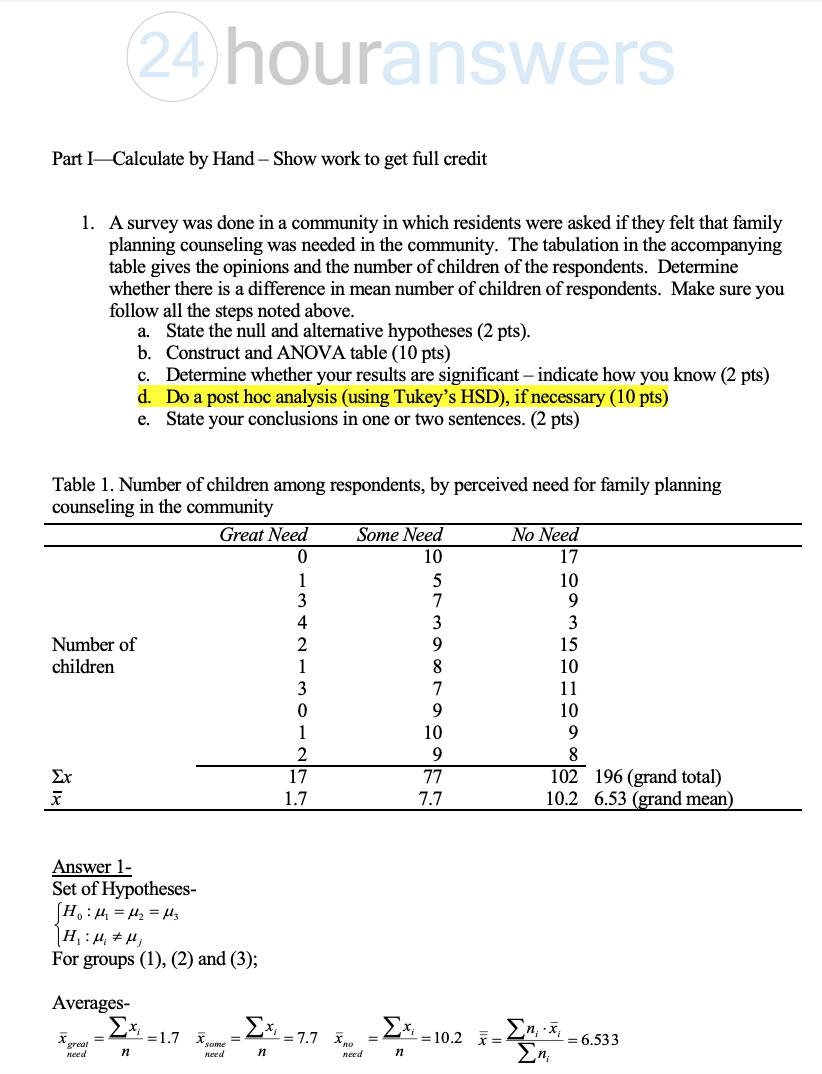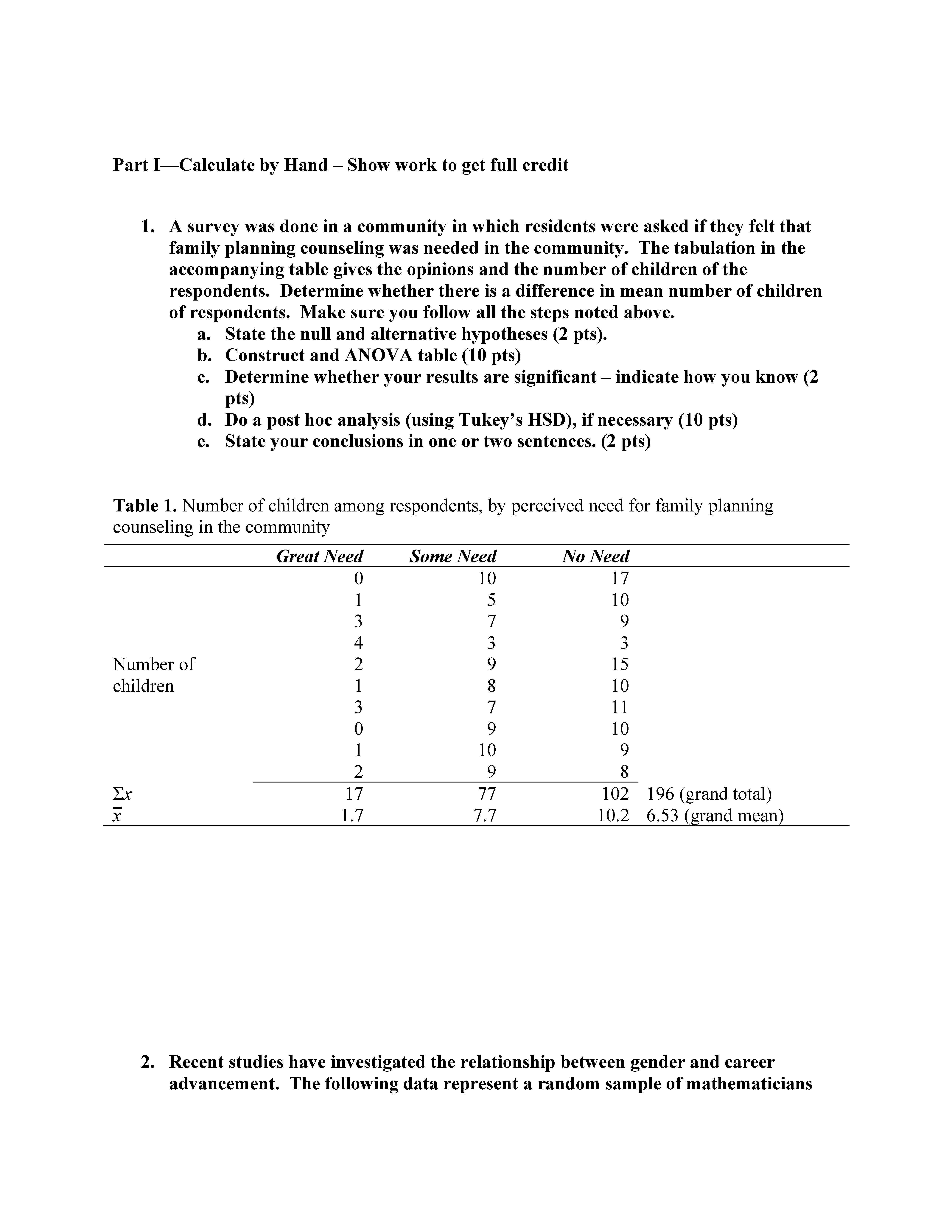 Part -Calculate by Hand Show work to get full credit 1. A survey w...