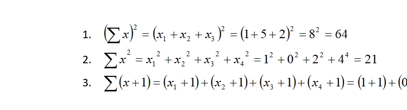 What is the value of (ΣX)2 for the scores 1, 5, 2? 10 16 30 64...