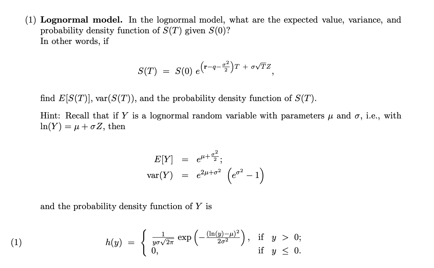 (1) Lognormal model. In the lognormal model, what are the expected...