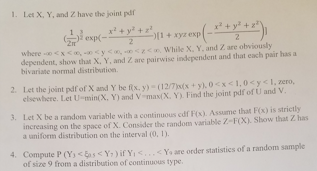 1. Let X, Y, and Z have the joint pdf (1) 1 2 exp ( - x² + y² 2...