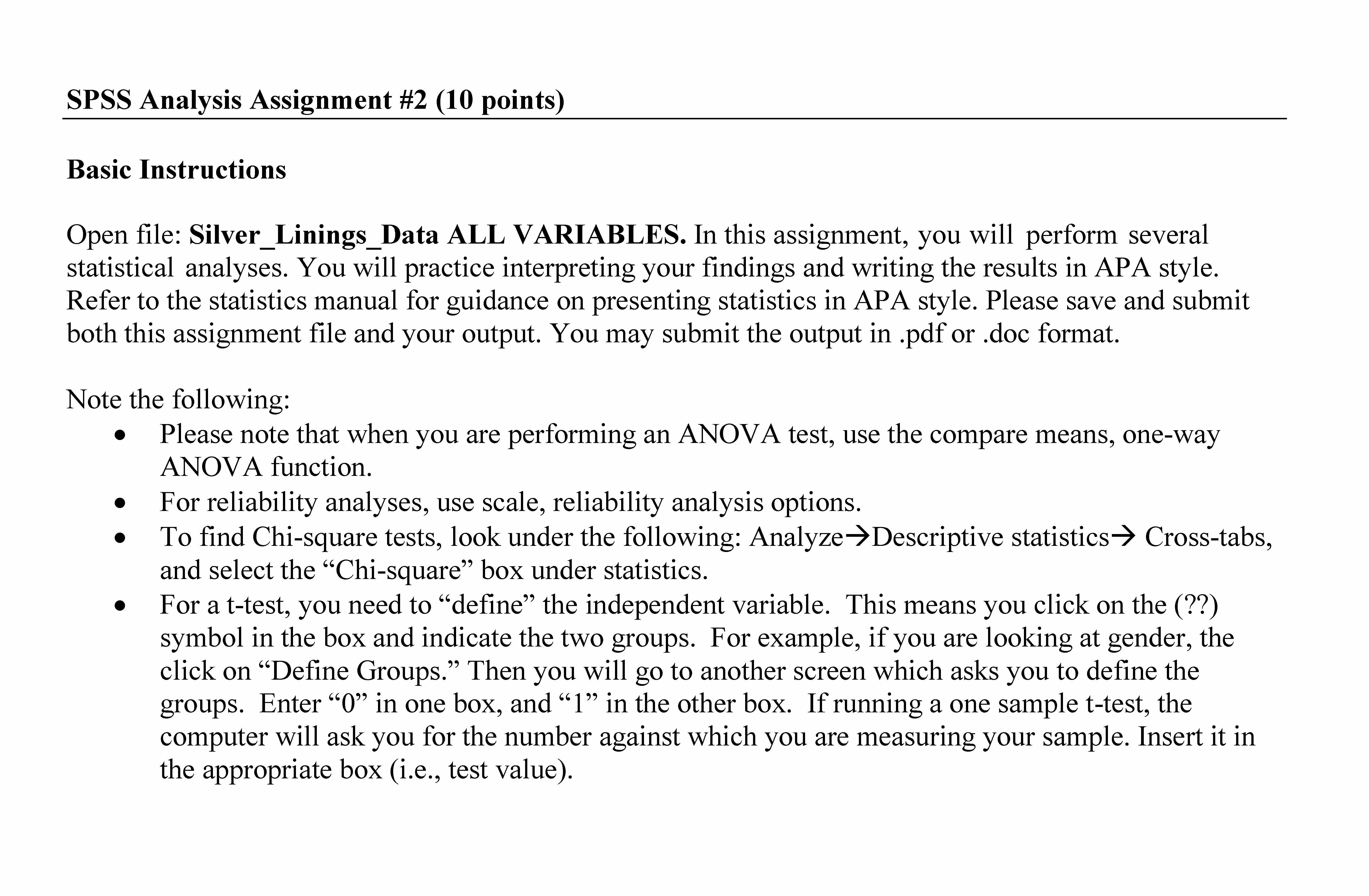 SPSS Analysis Assignment #2 (10 points) Basic Instructions Open fi...