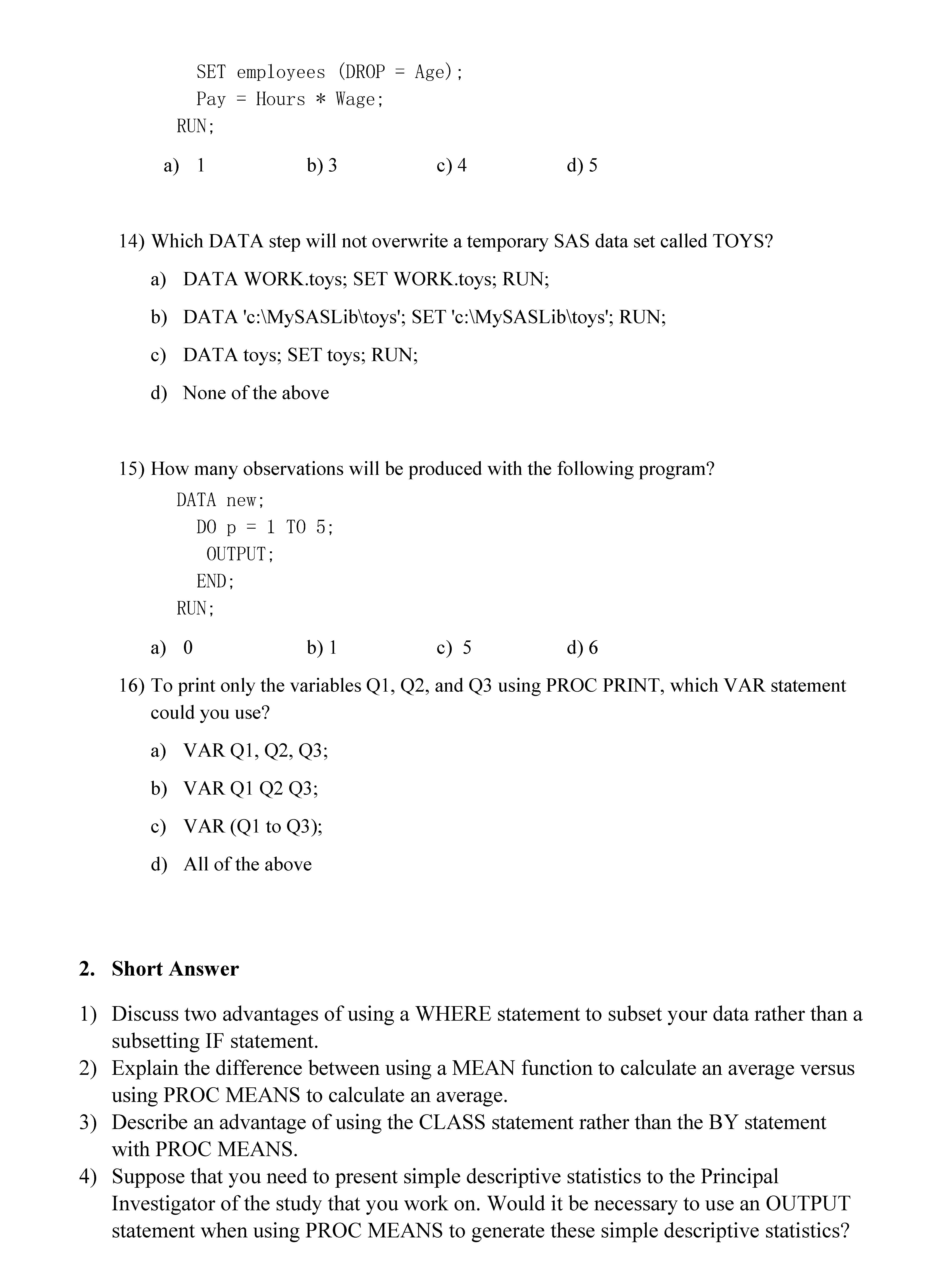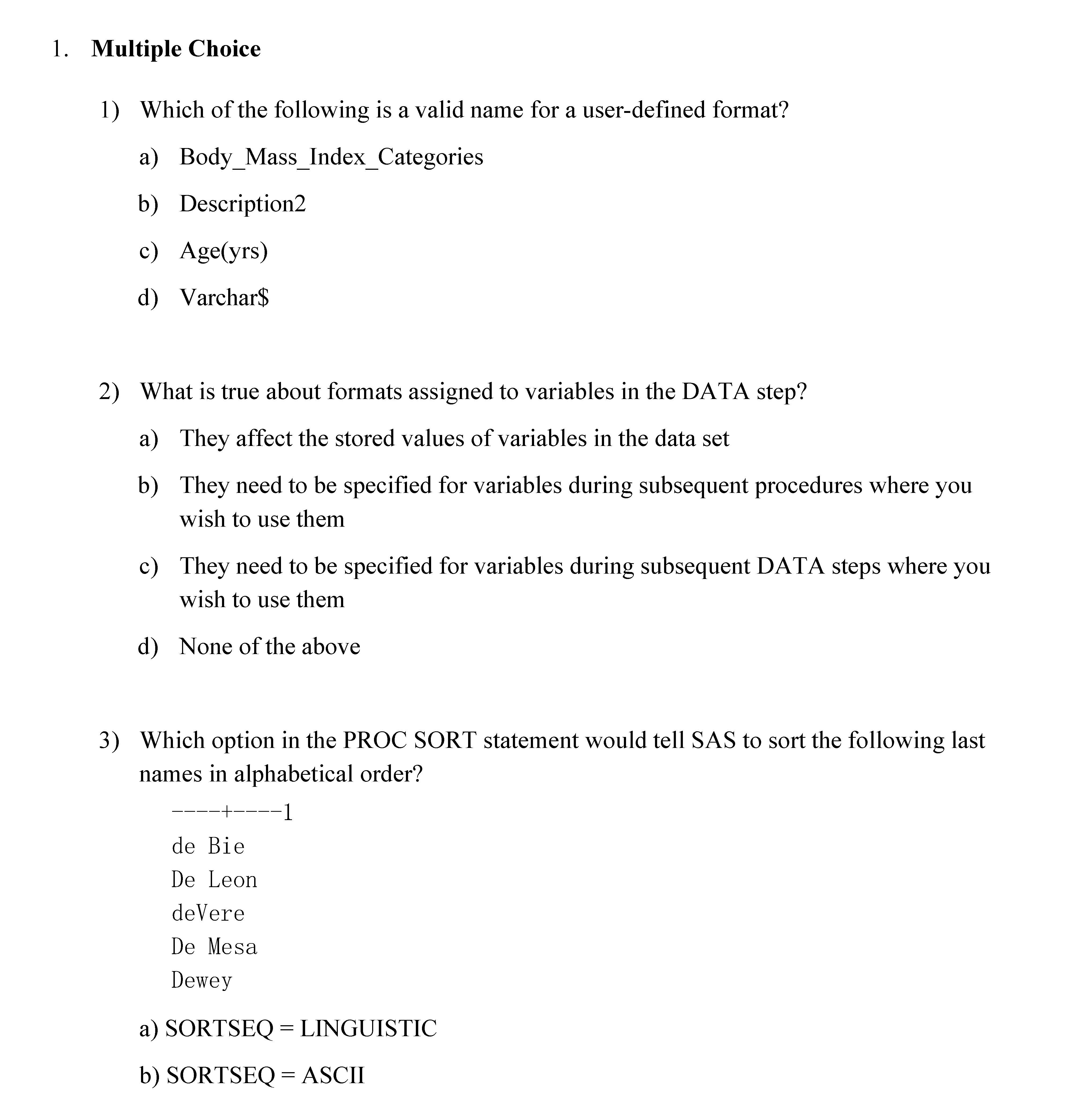 1. Multiple Choice 1) Which of the following is a valid name for a...