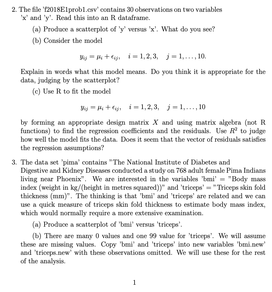2. The file 72018Elprobl.csv' contains 30 observations on two varia...