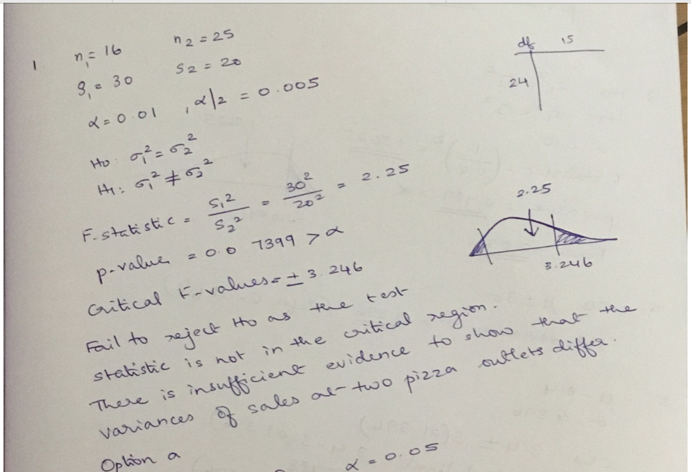 1. The manager wants to know whether the variances of the sales at ...