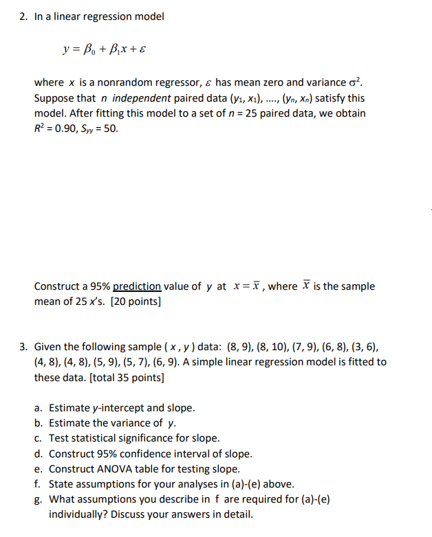 2. In a linear regression model y=Bo+B,x+ & where X is a nonr...