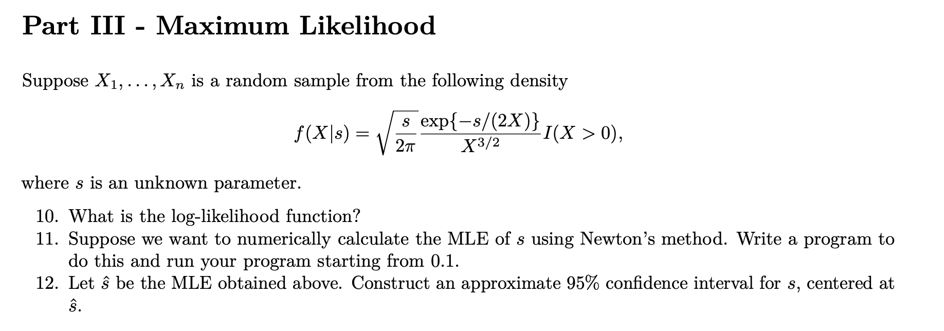 Part III - Maximum Likelihood Suppose X1, . . . , Xn is a random s...