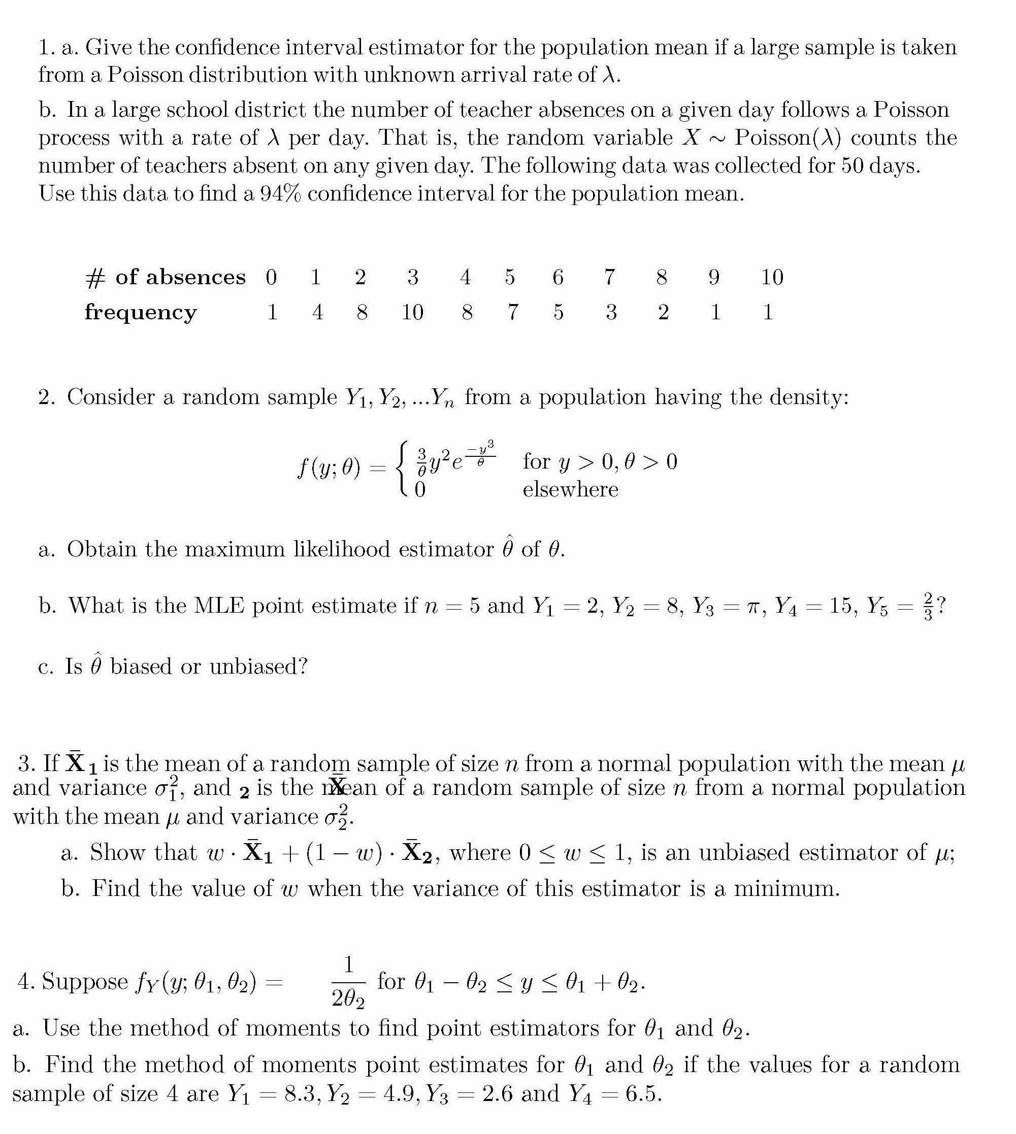 1. a. Give the confidence interval estimator for the population mea...
