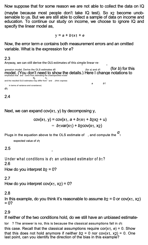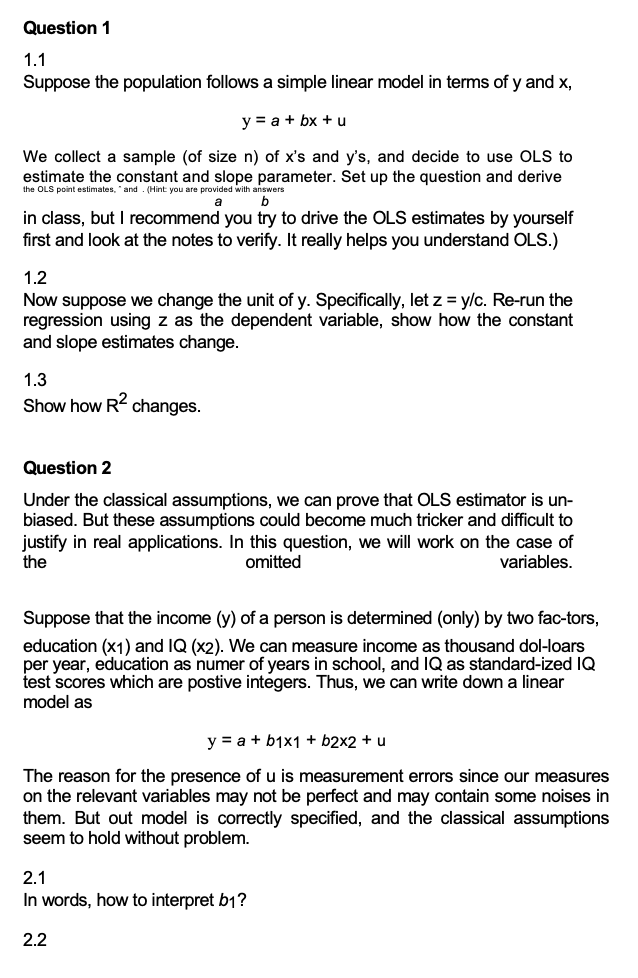 Question 1 1.1 Suppose the population follows a simple linear mod...