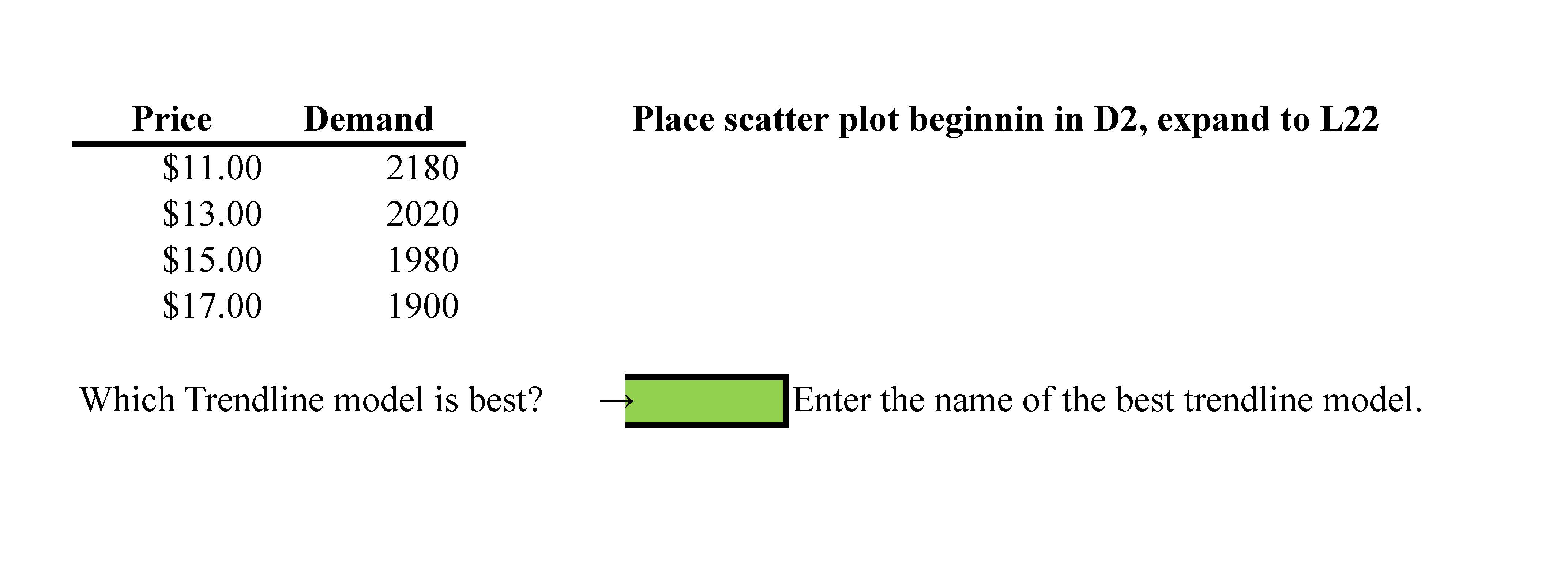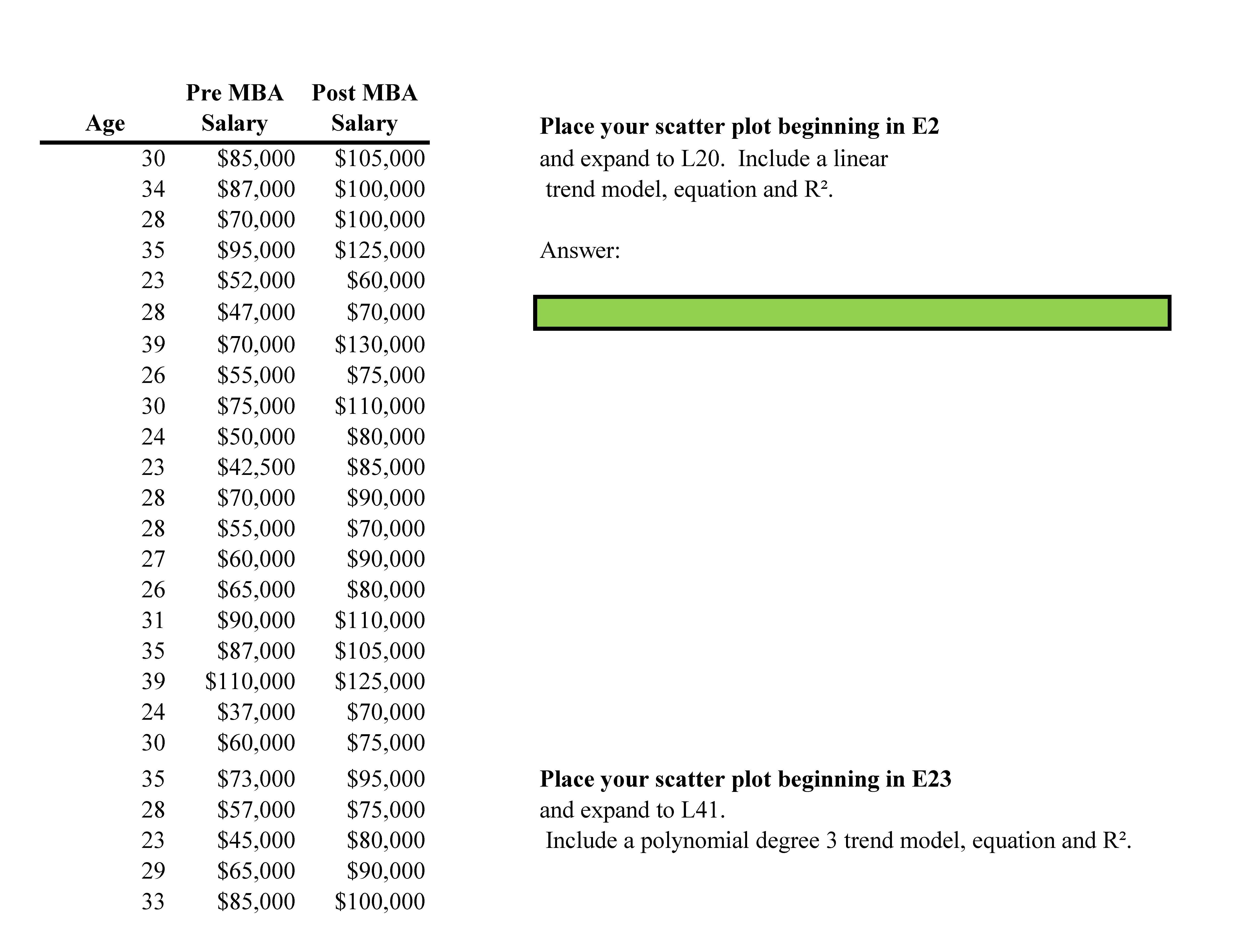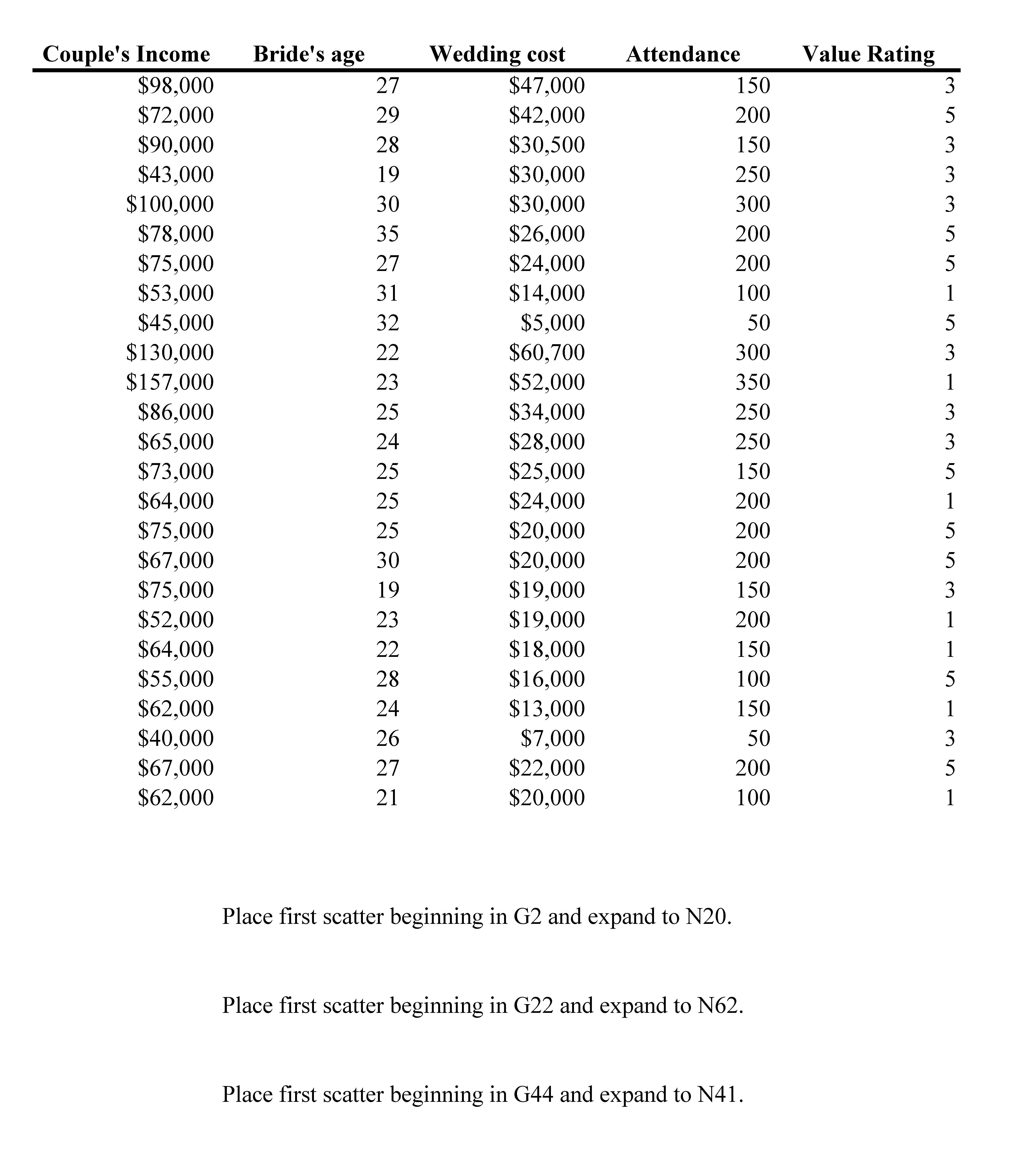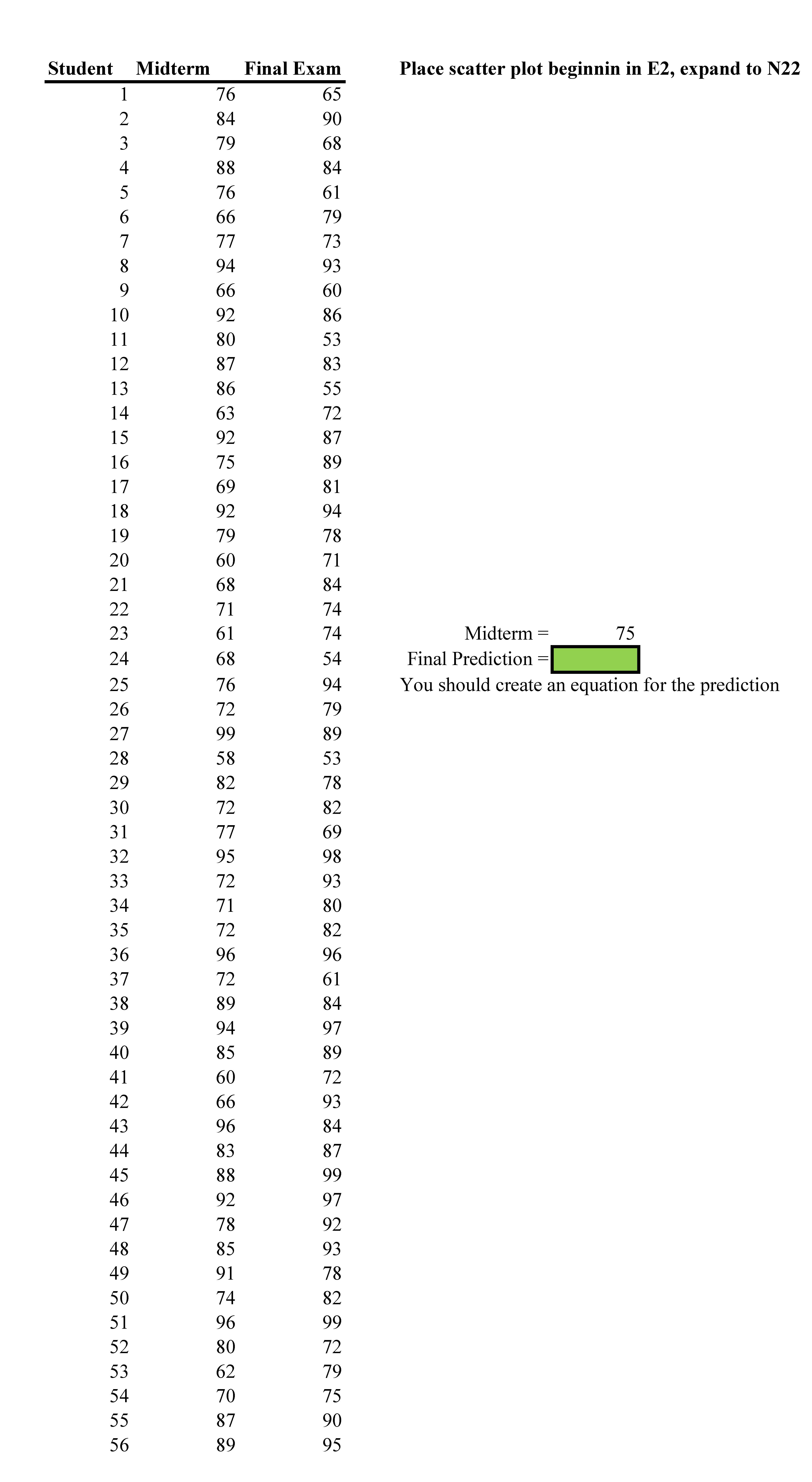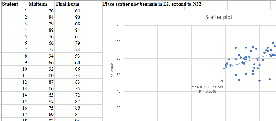 Student Midterm Final Exam Place scatter plot beginnin in E2, ex...