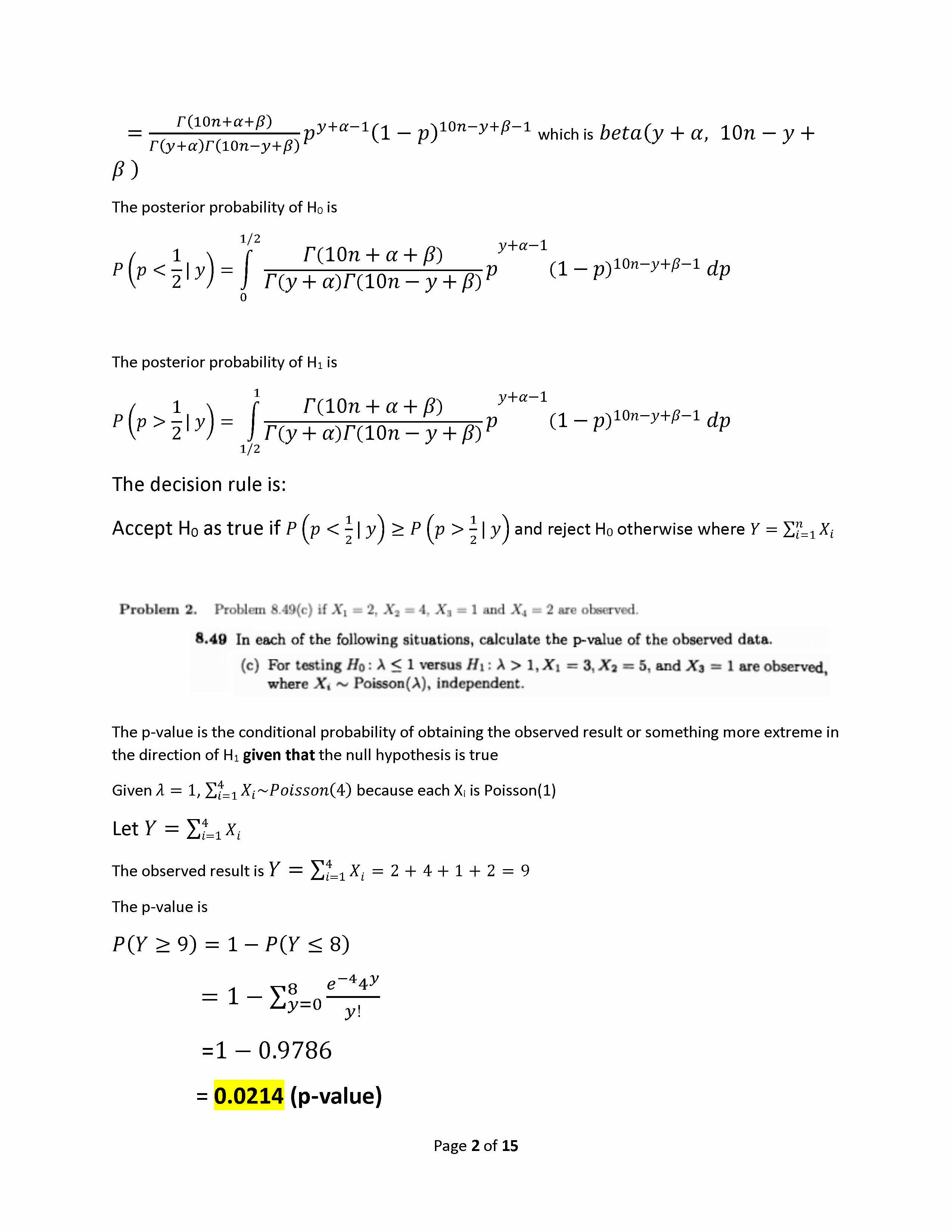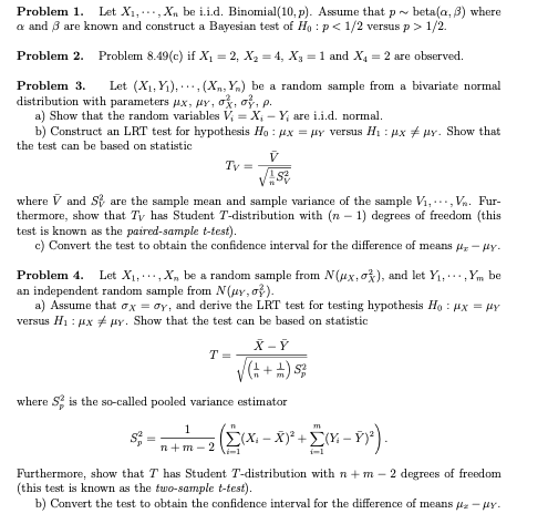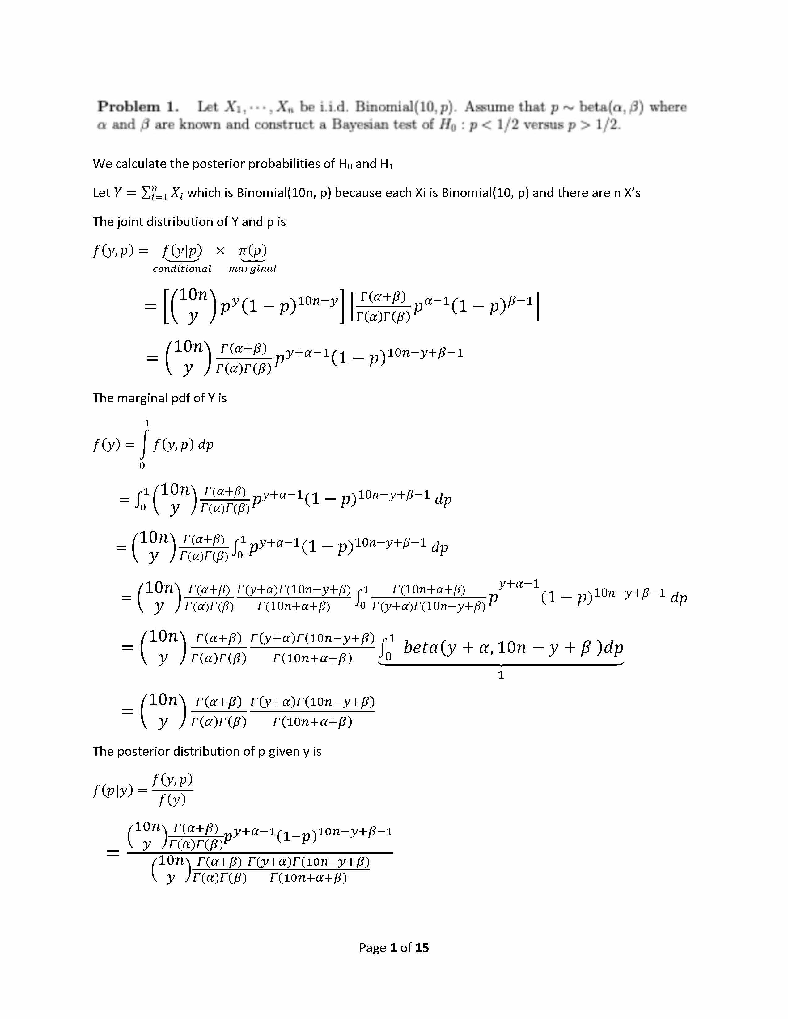 Problem 1. Let X1, Xn be i.i.d. Binomial(10, p). Assume that p~ bet...