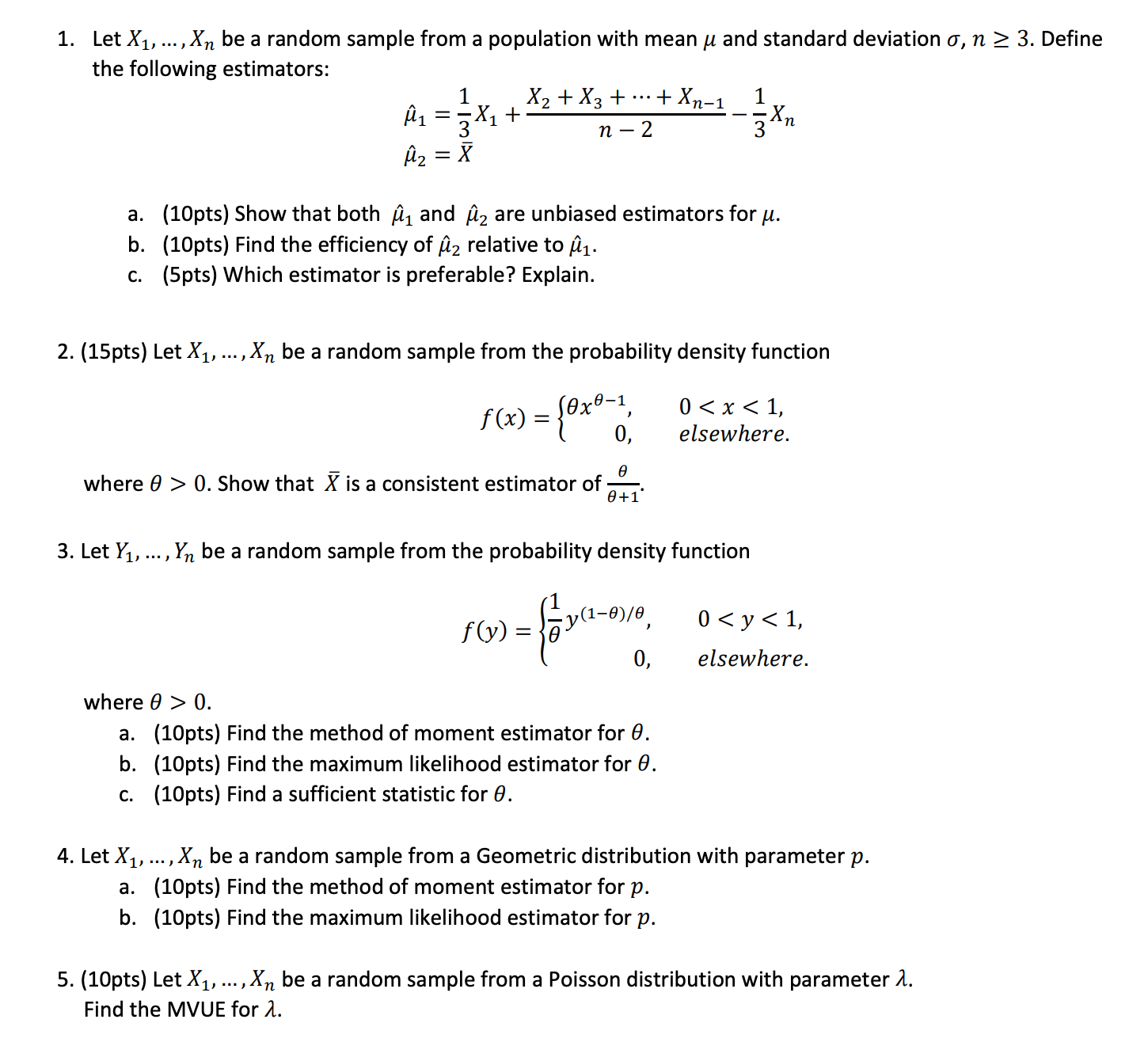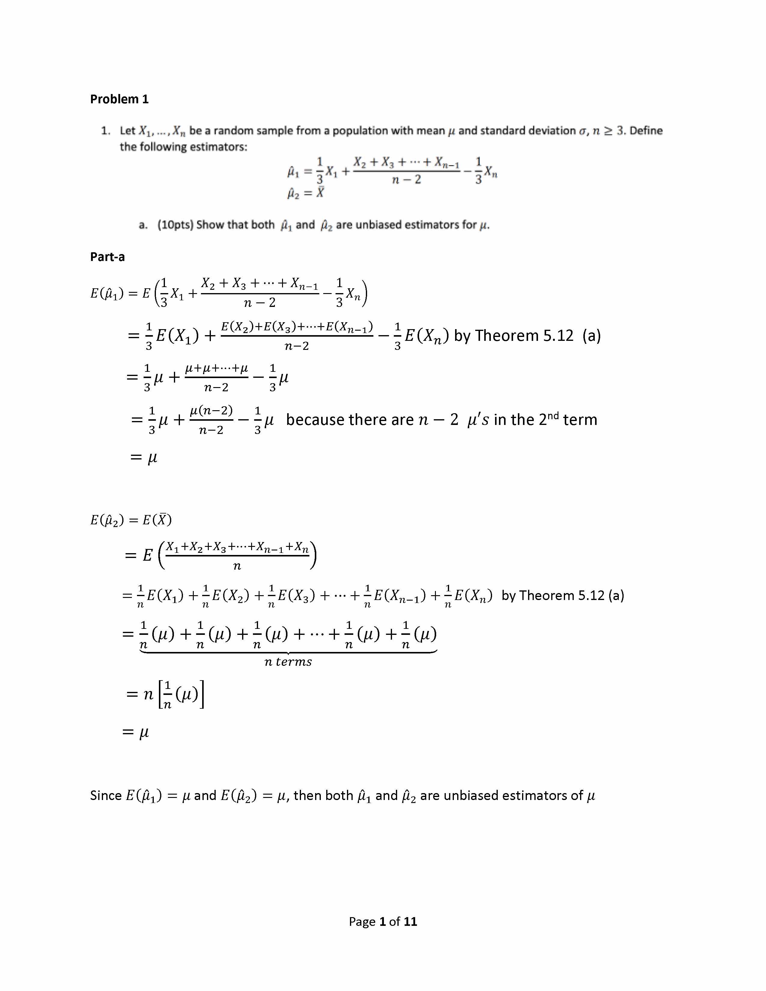 1. Let X, ...,Xn be a random sample from a population with mean u ...