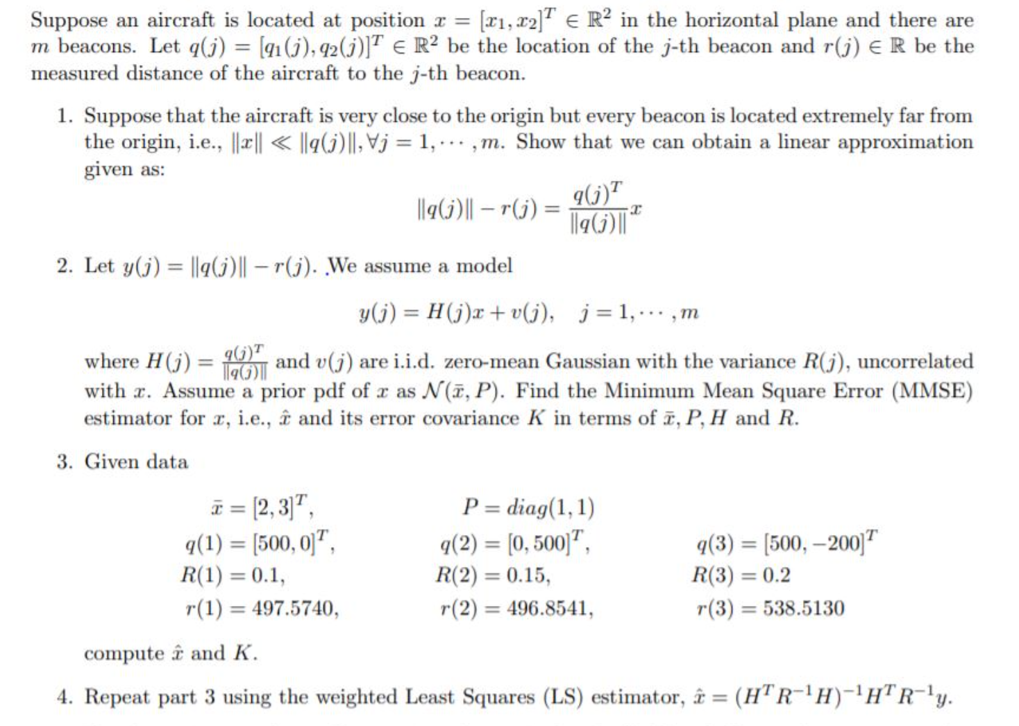 Suppose an aircraft is located at position x = [x1,x2]T E R2 in the...
