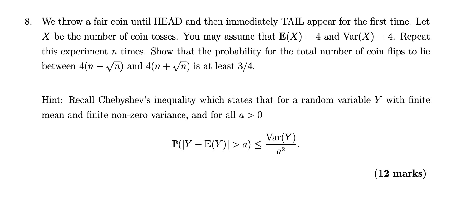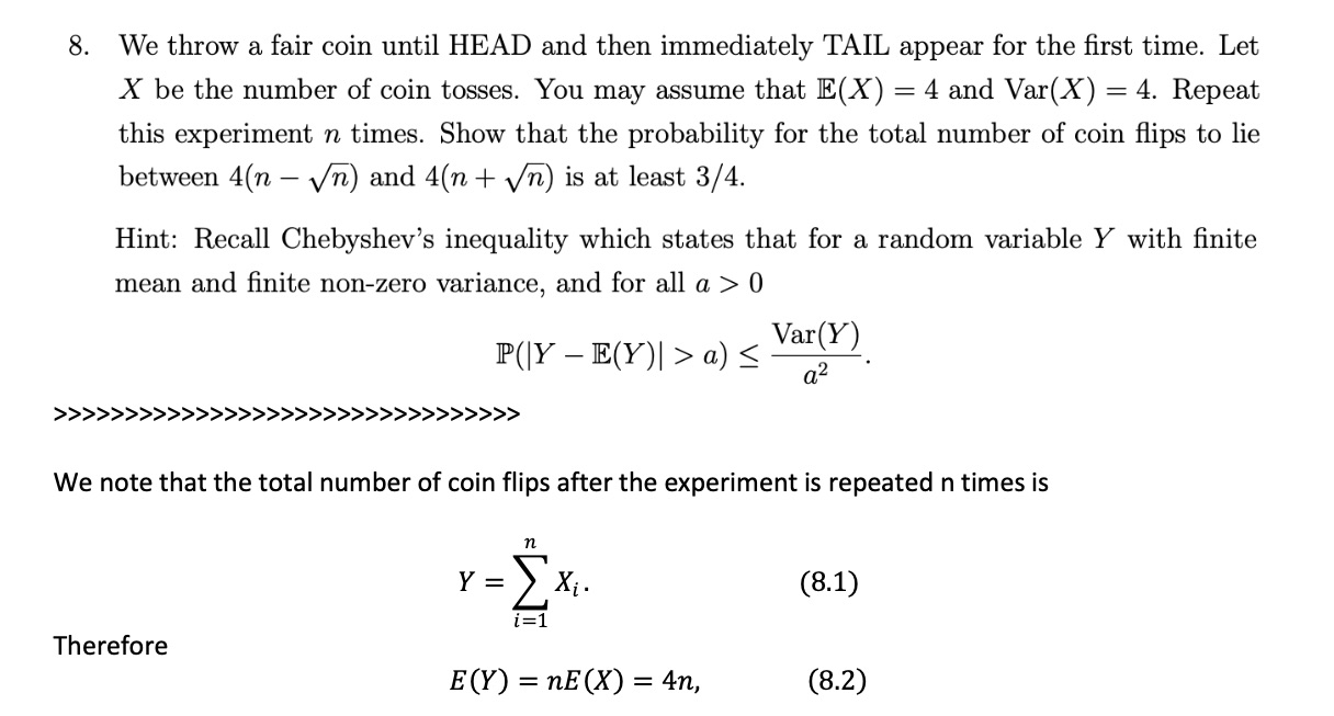 8. We throw a fair coin until HEAD and then immediately TAIL appear...