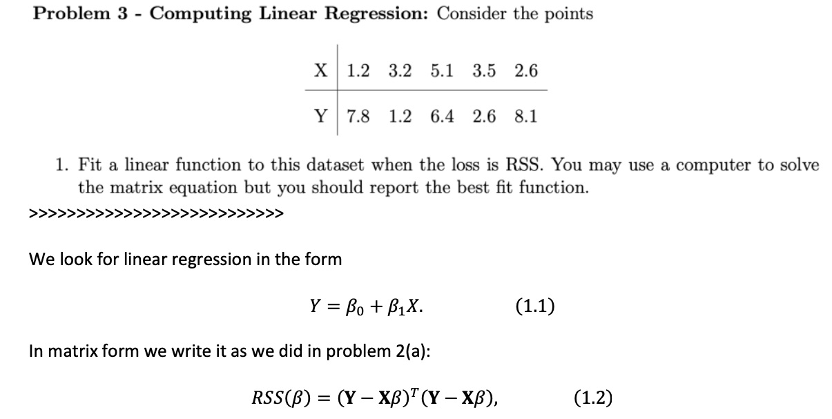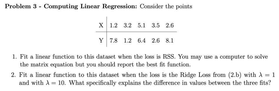 Problem 3 - Computing Linear Regression: Consider the points X 1....