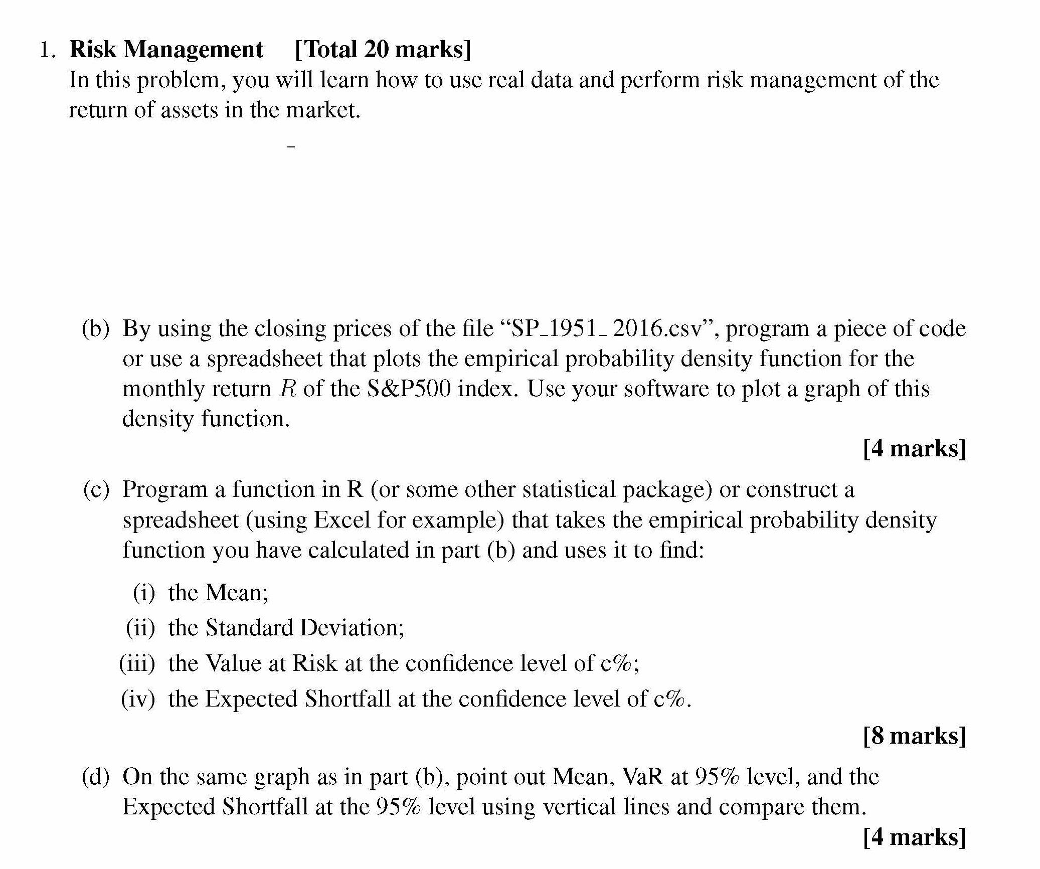 1. Risk Management [Total 20 marks] In this problem, you will lea...