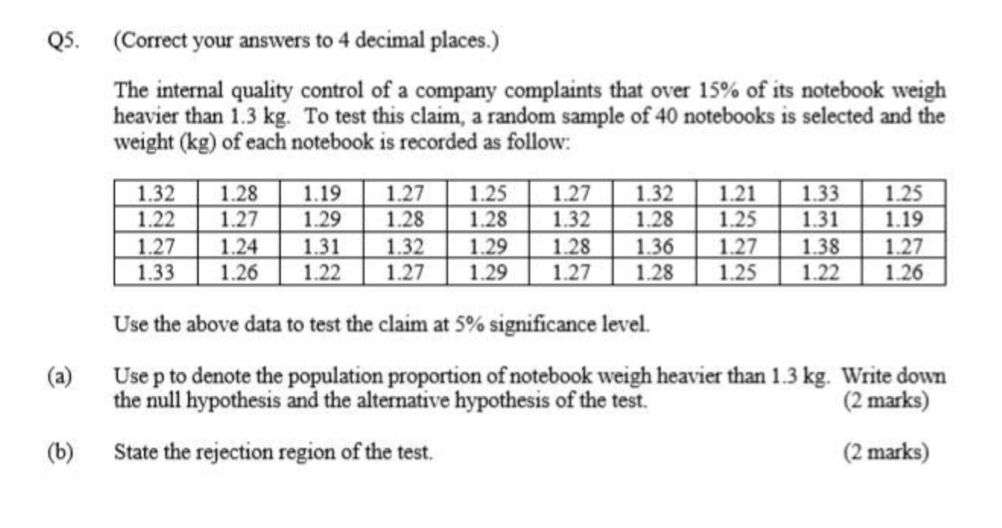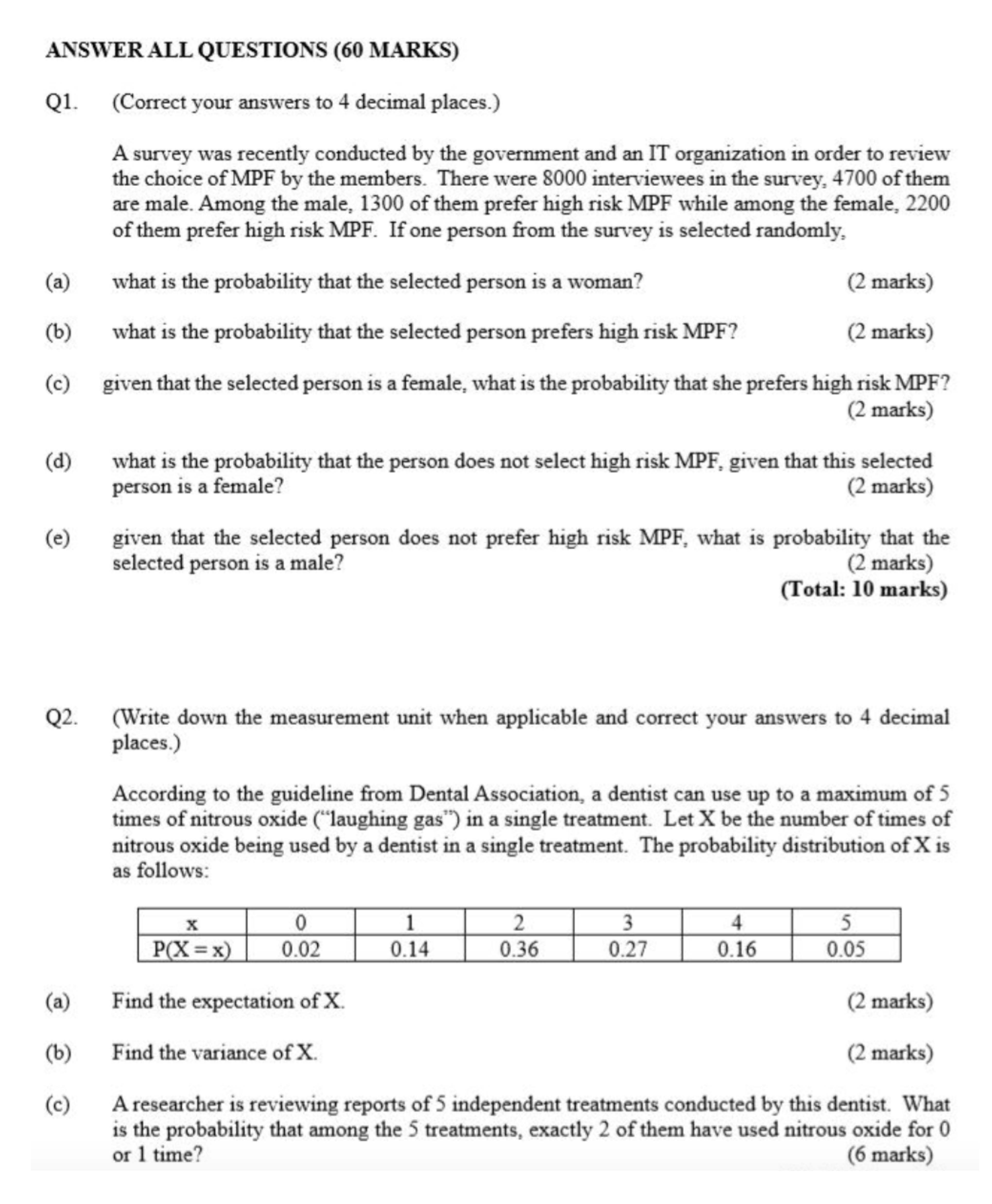 ANSWER ALL QUESTIONS (60 MARKS) Q1. (Correct your answers to deci...