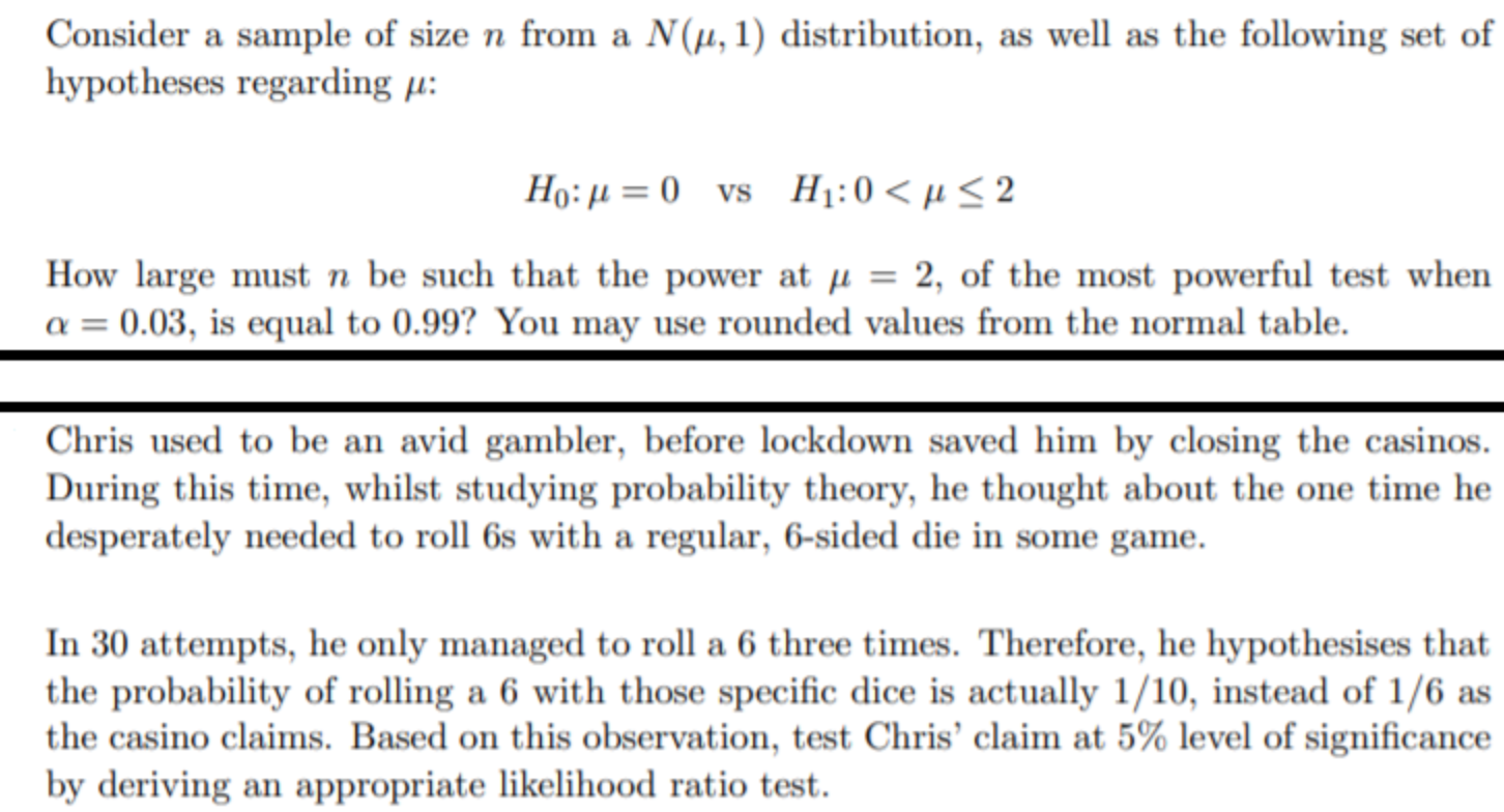 Consider a sample of size n from a N(, 1) distribution, as well as ...