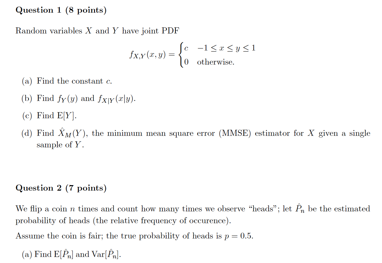 Question 1 (8 points) Random variables X and Y have joint PDF C ...
