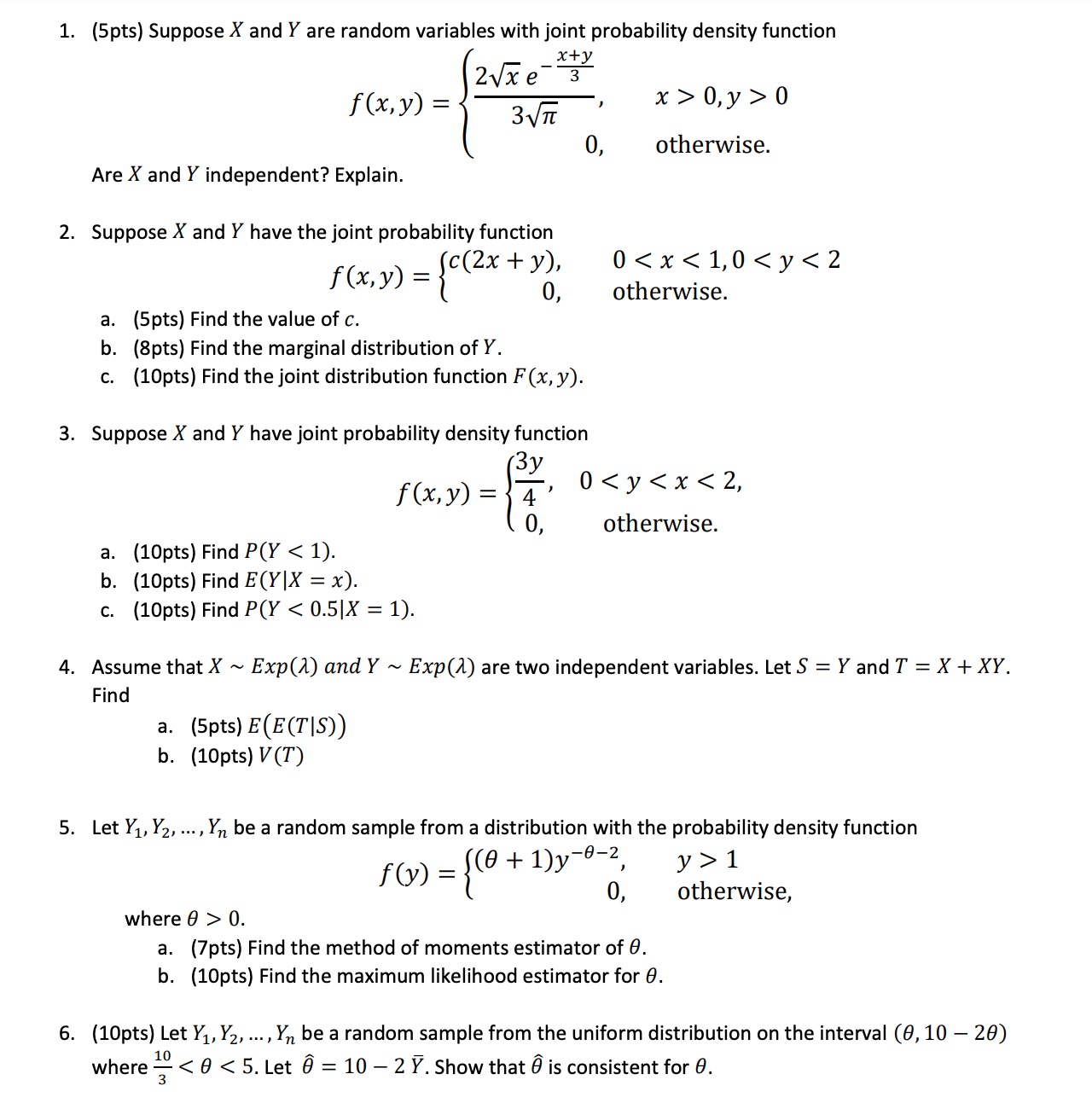 1. (5pts) Suppose X and Y are random variables with joint probabili...