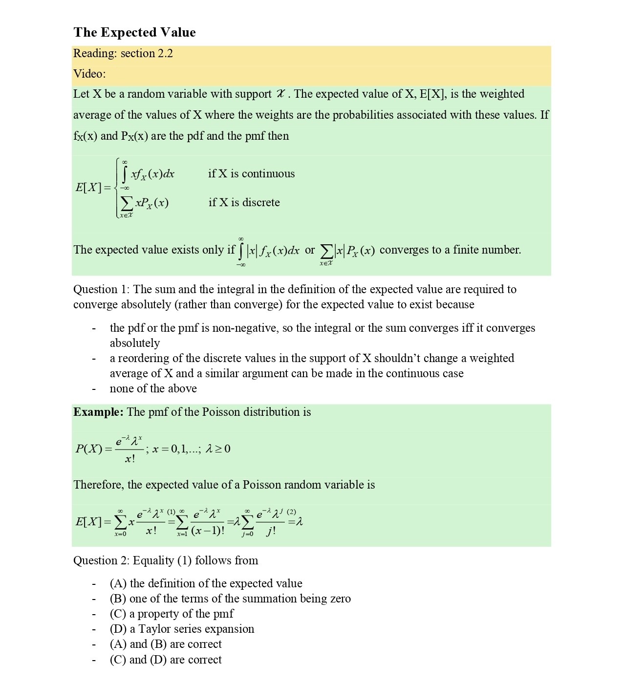 The Expected Value Reading: section 2.2 Video: Let X be a random...