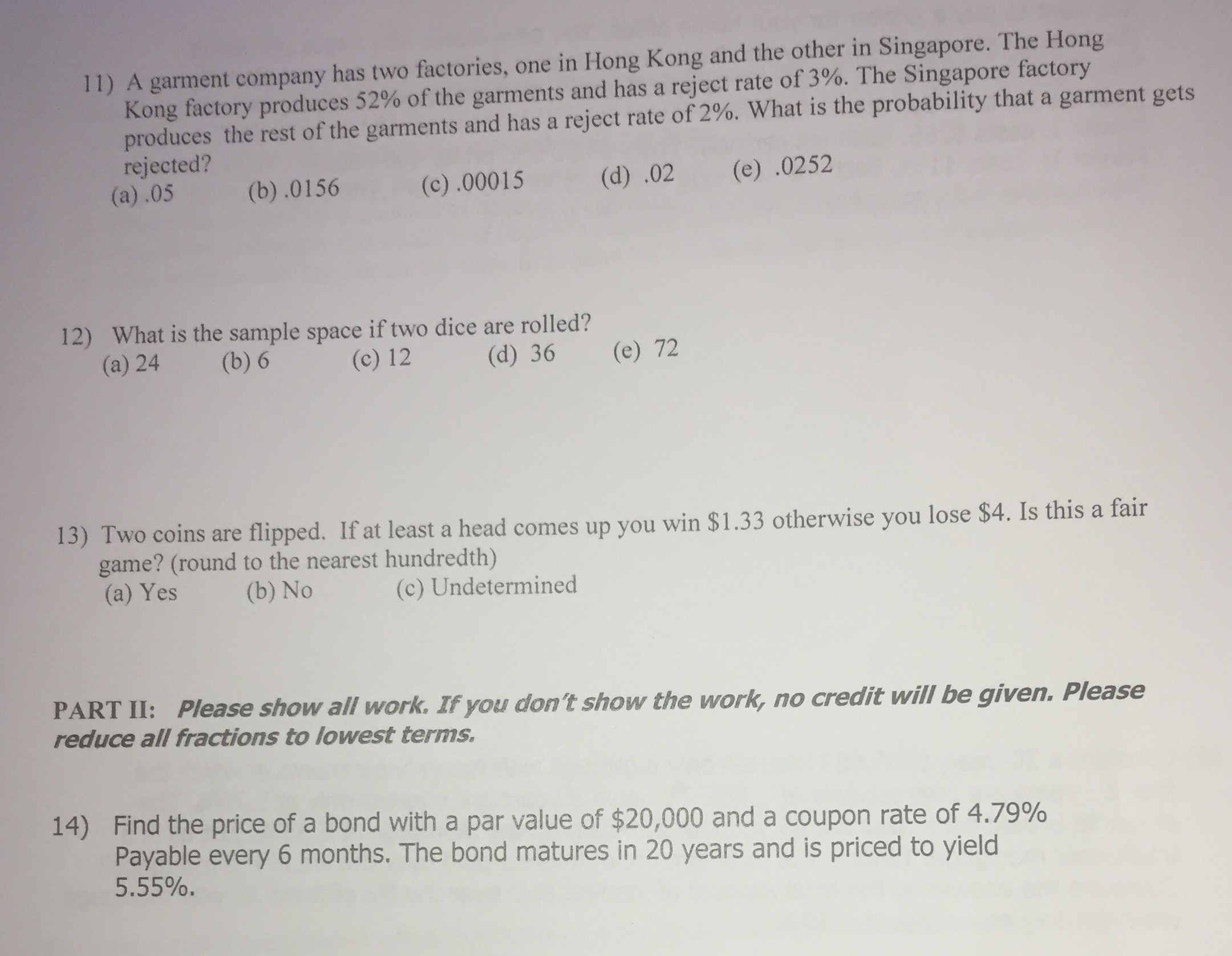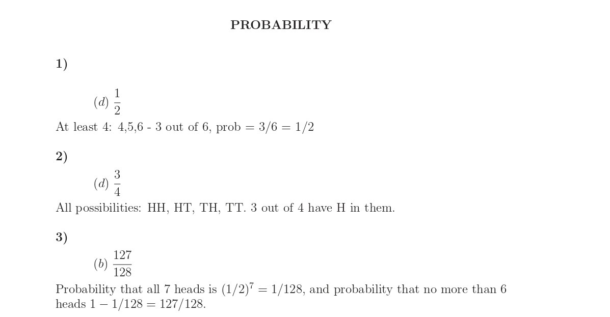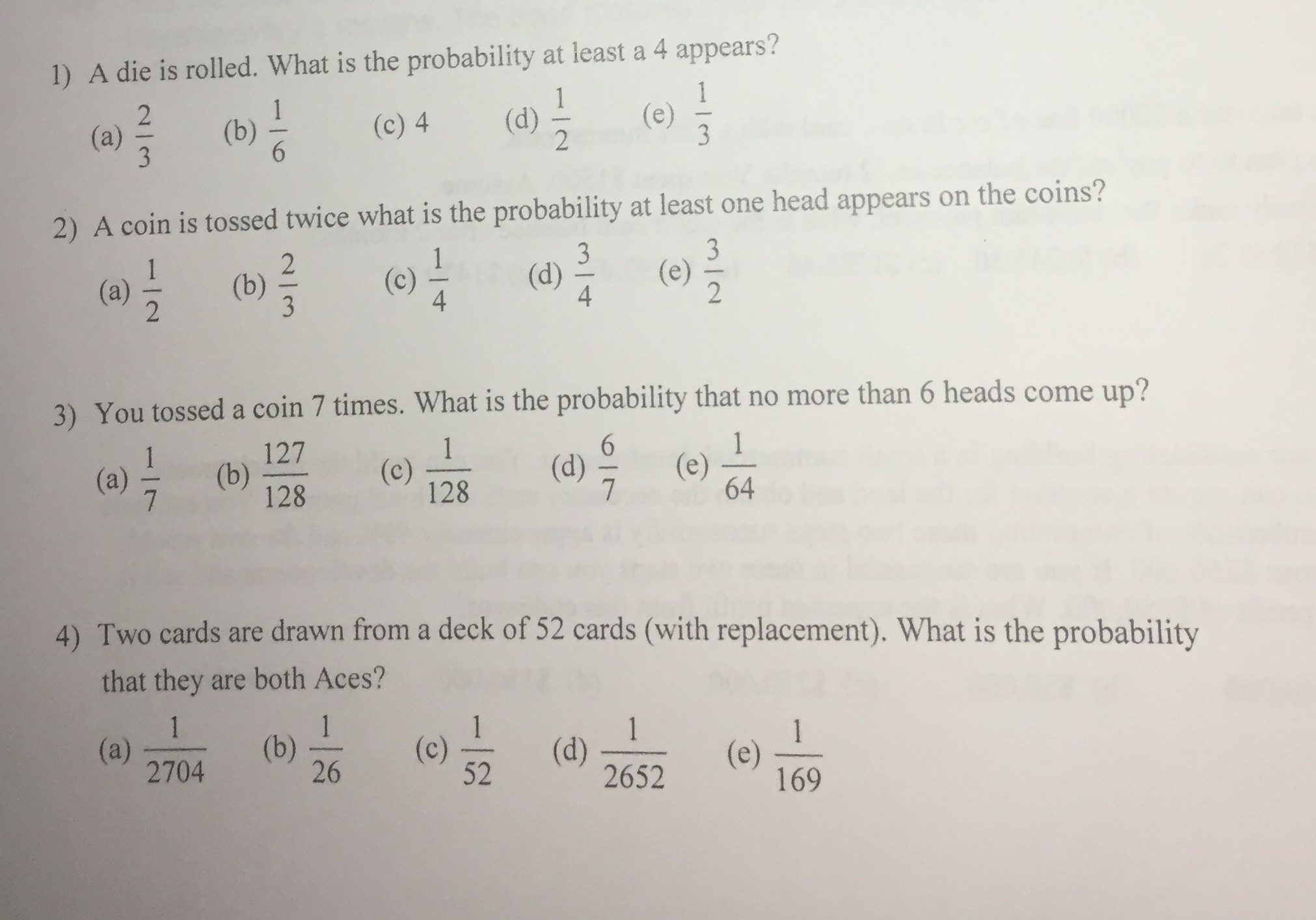 1) A die is rolled. What is the probability at least a 4 appears?...