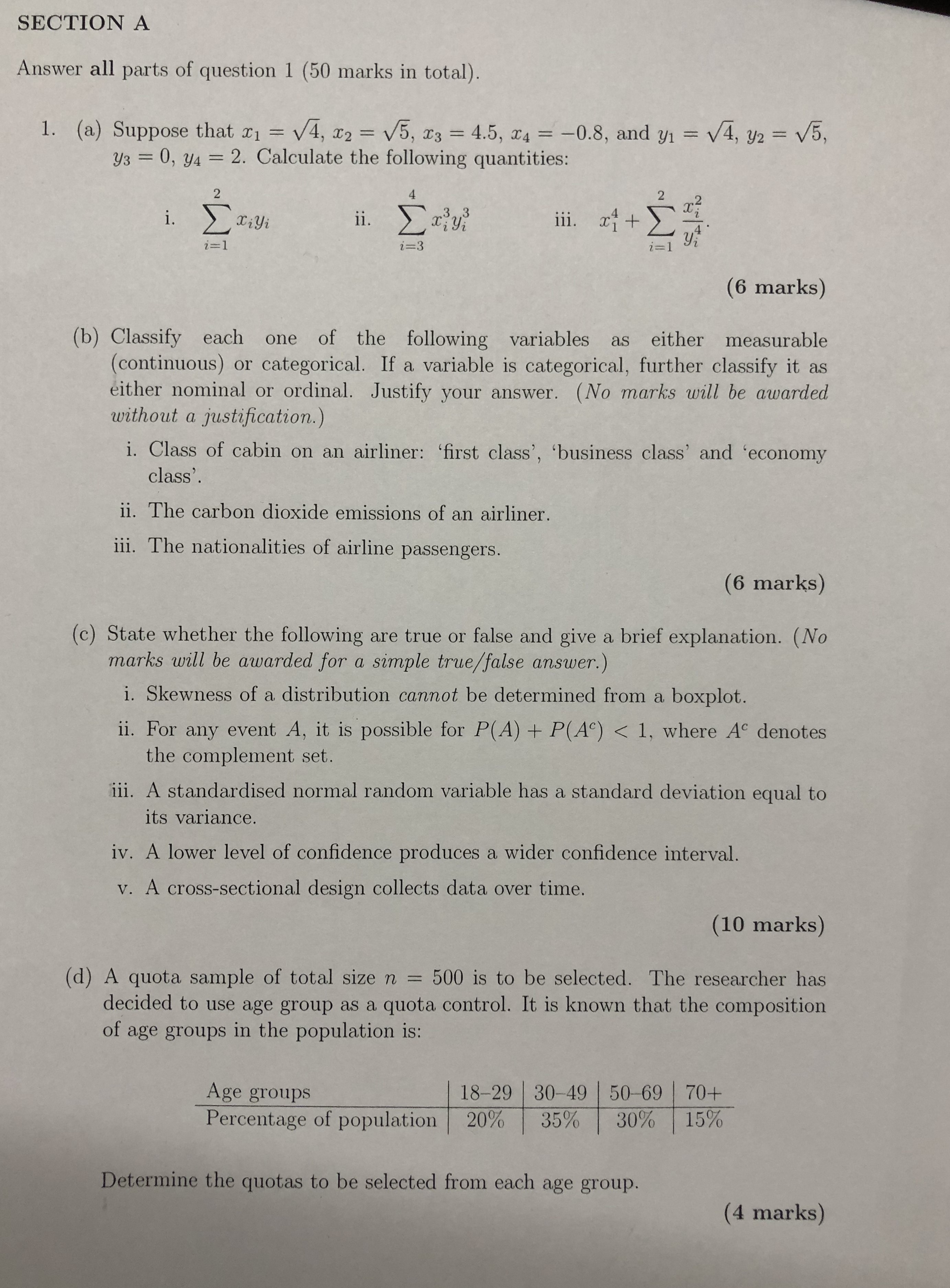 SECTION A Answer all parts of question 1 (50 marks in total). 1. ...